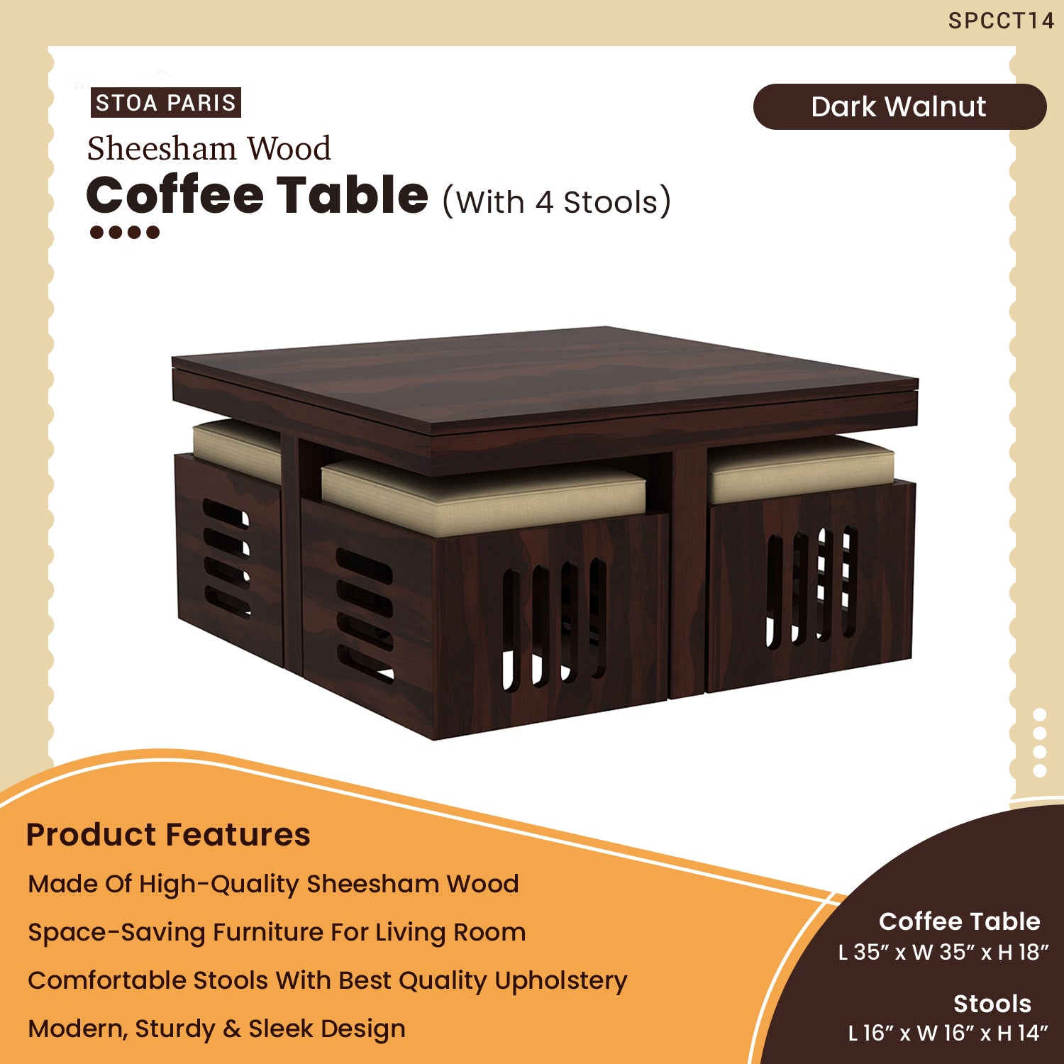 Harper - Solid Sheesham Wood Coffee Table With 4 Stools - Dark Walnut