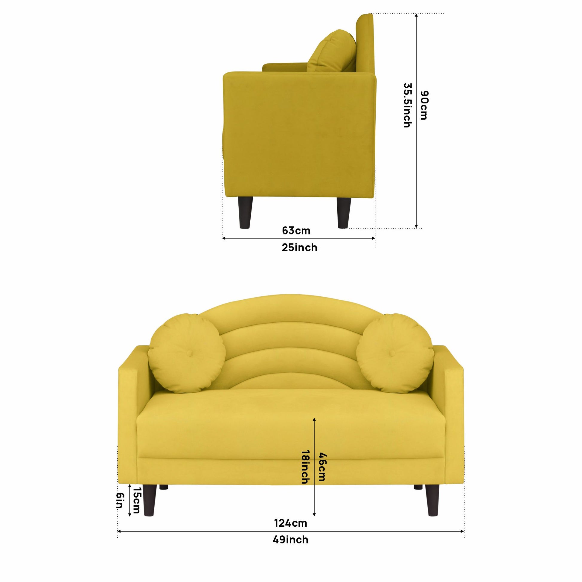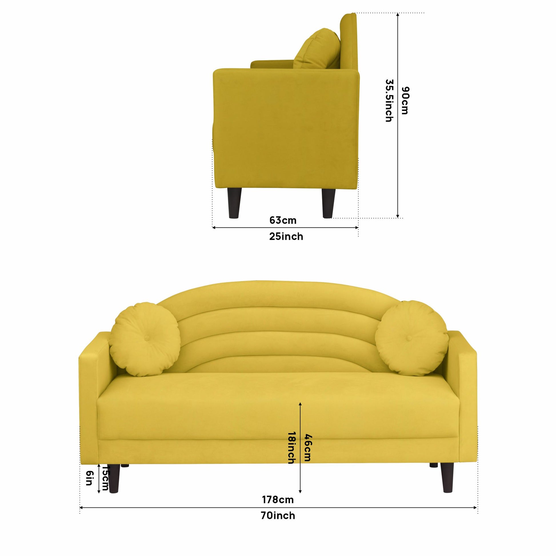 Isabel Round Quilted Back Fabric Sofa - Yellow