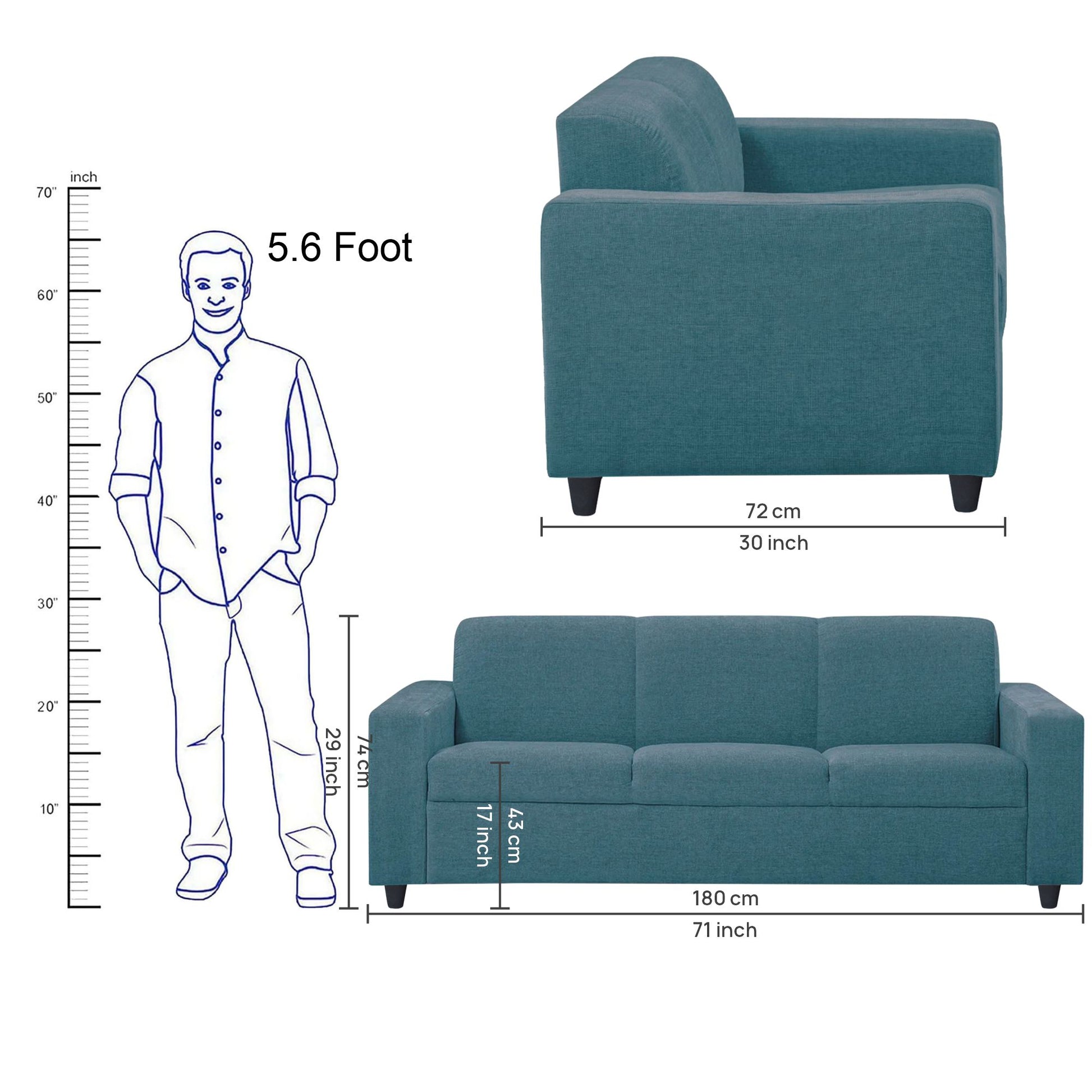 3 Seater : 71L x 30W x 29H (cms)