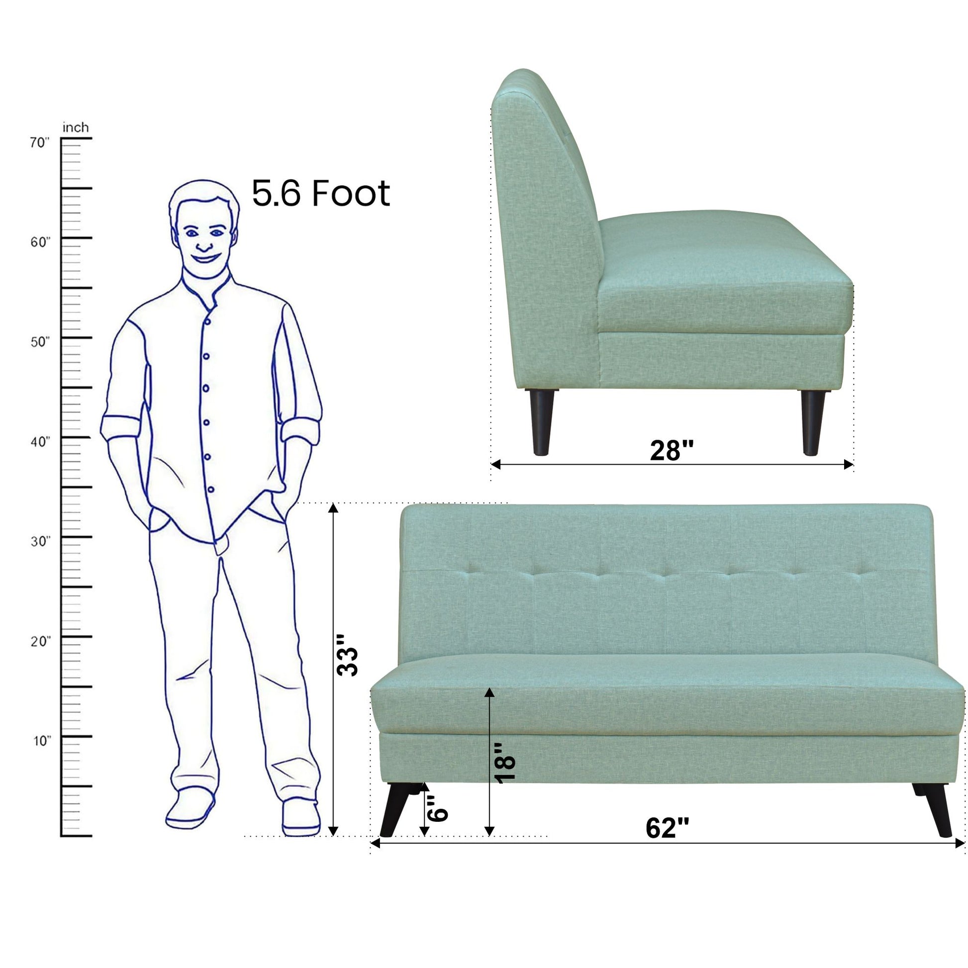 3 Seater : 62L x 28W x 33H (cms)