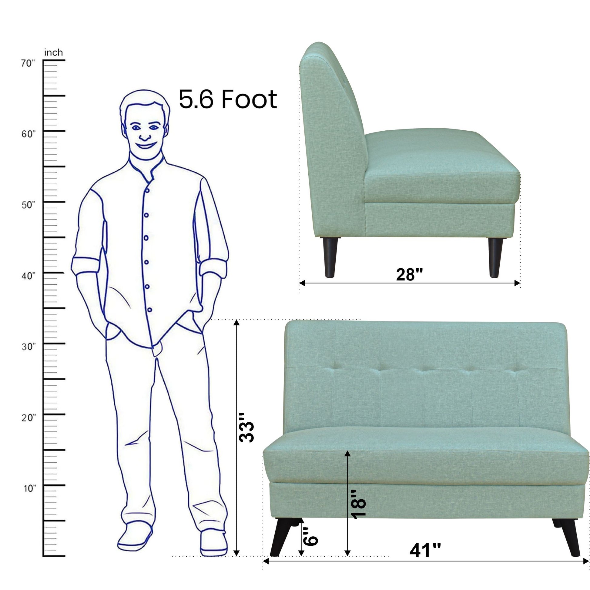 2 Seater : 41L x 28W x 33H (cms)