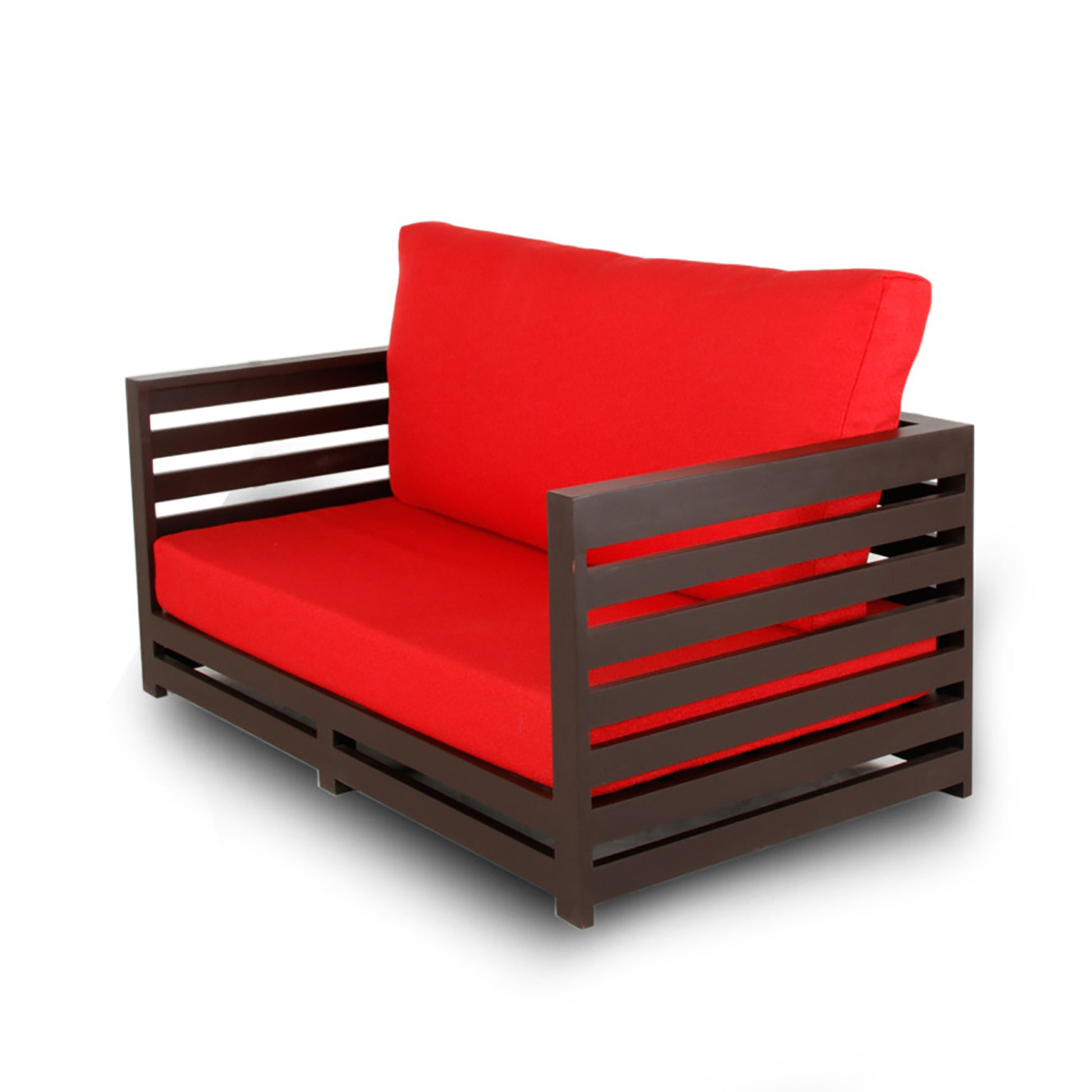 ARRA Jinjer Contemporary Two Seater Sofa - Red. Bring home this red coloured 2-seater sofa and make your living interior look stylish. This 2-seater sofa is made from HDF, which makes it sturdy. Further, the red coloured polycotton upholstery adds to its quality and makes it a valuable investment.
