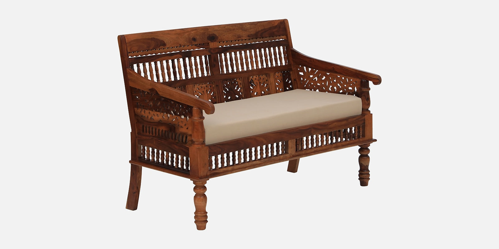 Kling - Sheesham Wood 2 Seater Sofa In Honey Oak Finish