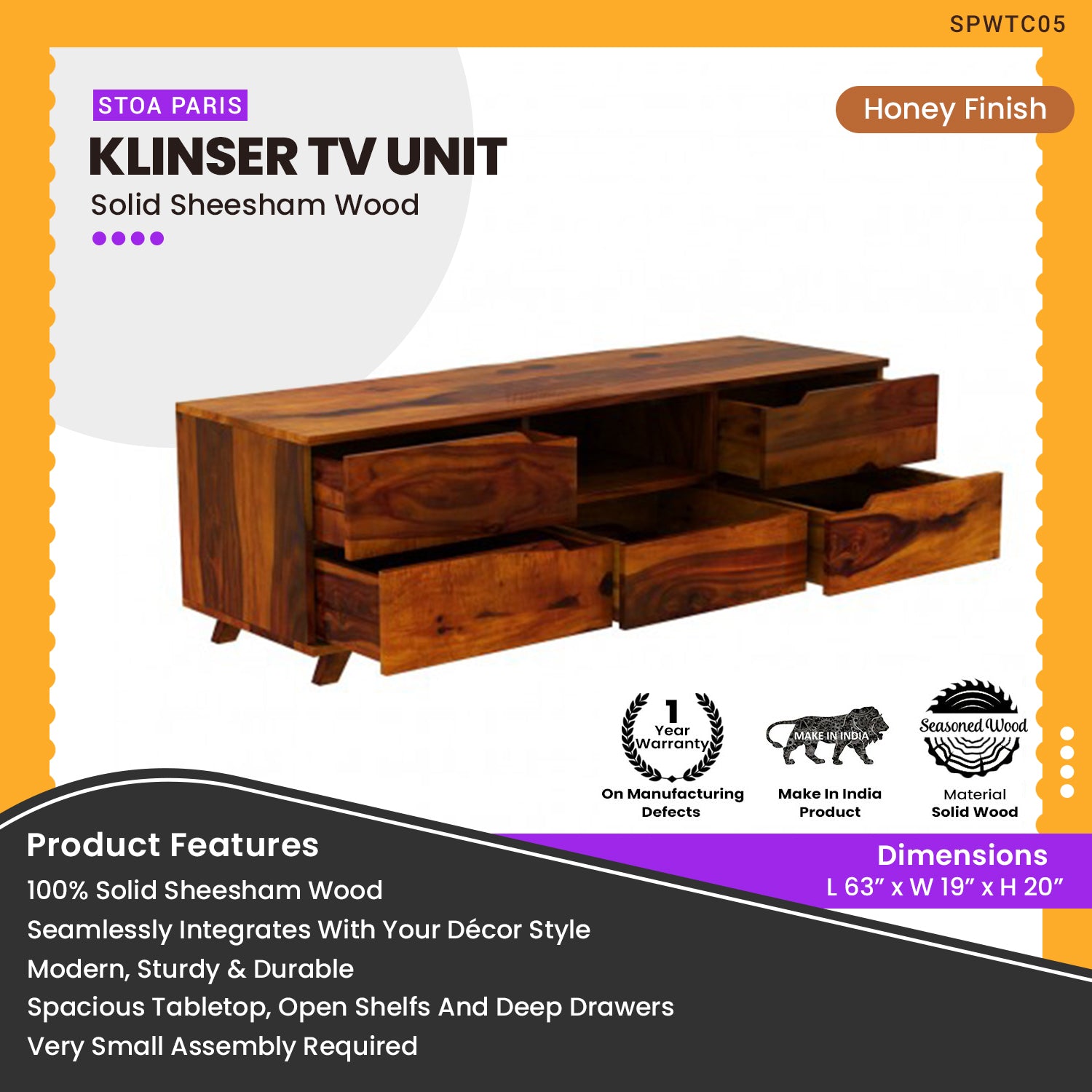 - Wood Color Finish : Honey Finish
