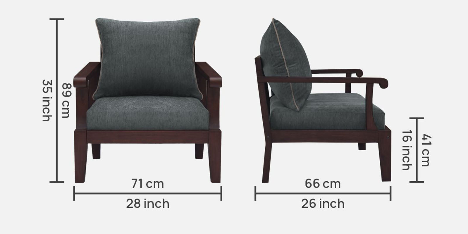 1 Seater : 28L x 26W x 35H (cms)