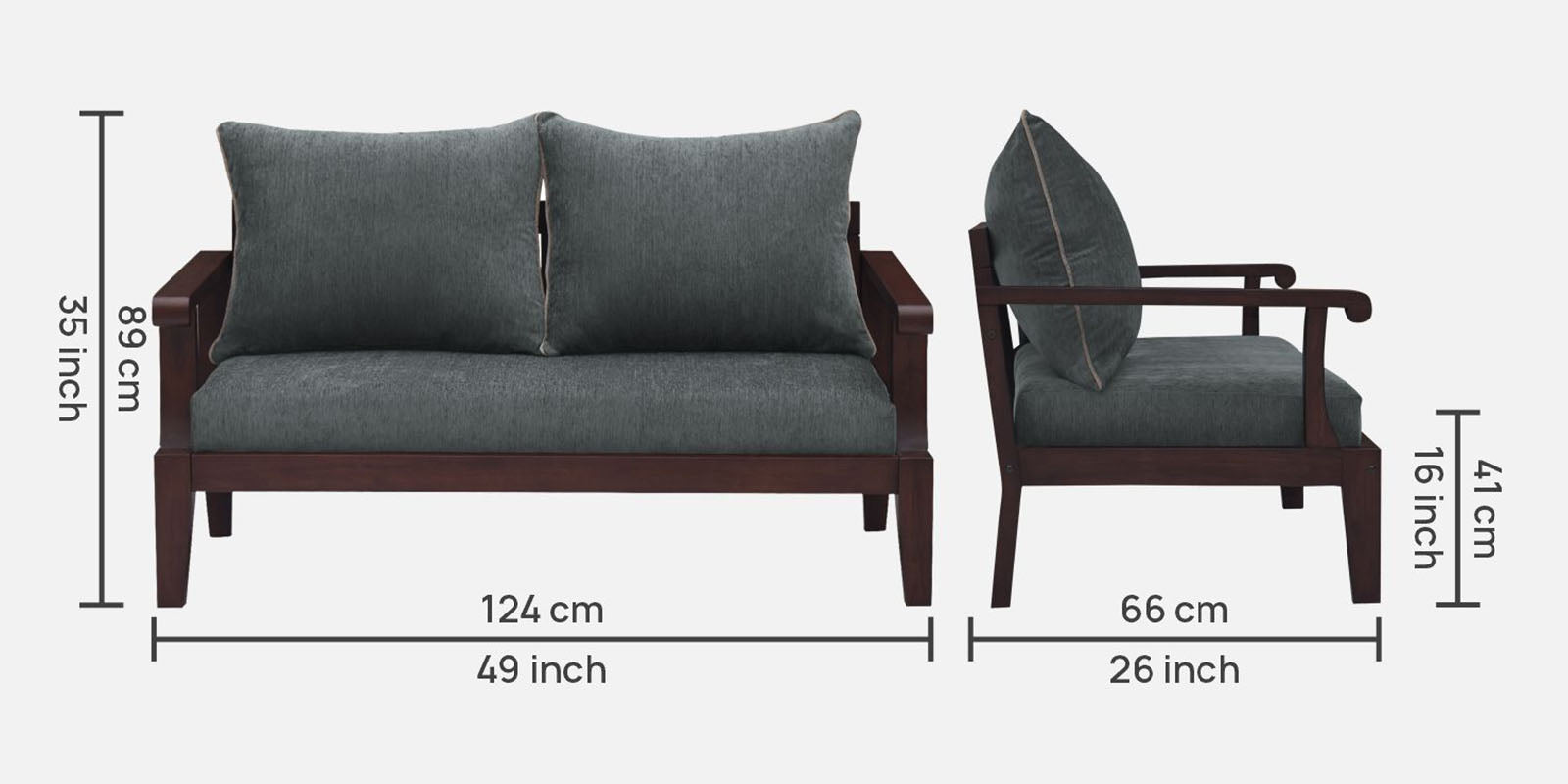 2 Seater : 49L x 26W x 35H (cms)
