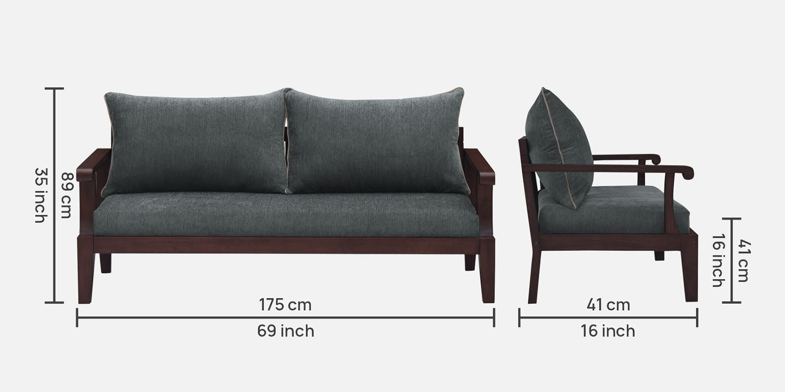 3 Seater : 69L x 26W x 35H (cms)