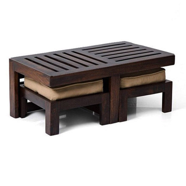 Lidia - SoliD wood Coffee Table With Two Stools - Walnut