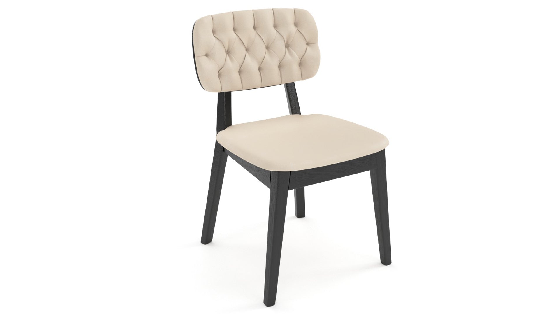 Lugo Solid Wood Chair Black Polish Base & Beige Upholstery Fabric