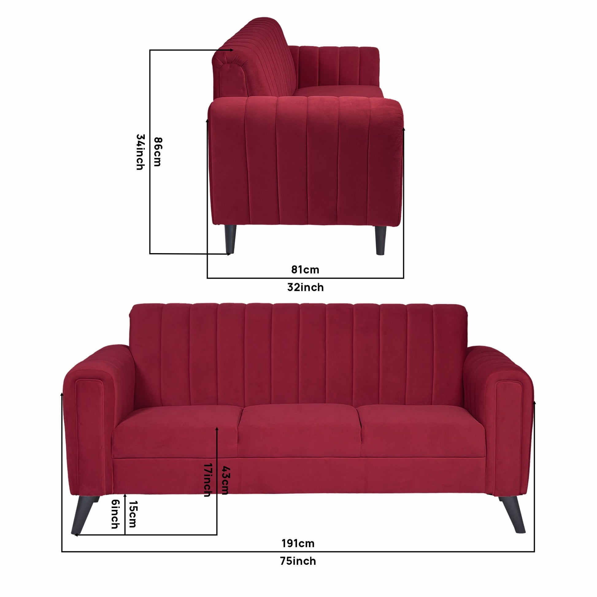 Mabel Three Seater Quilted Back Sofa Fabric 3 Seater Sofa - Maroon