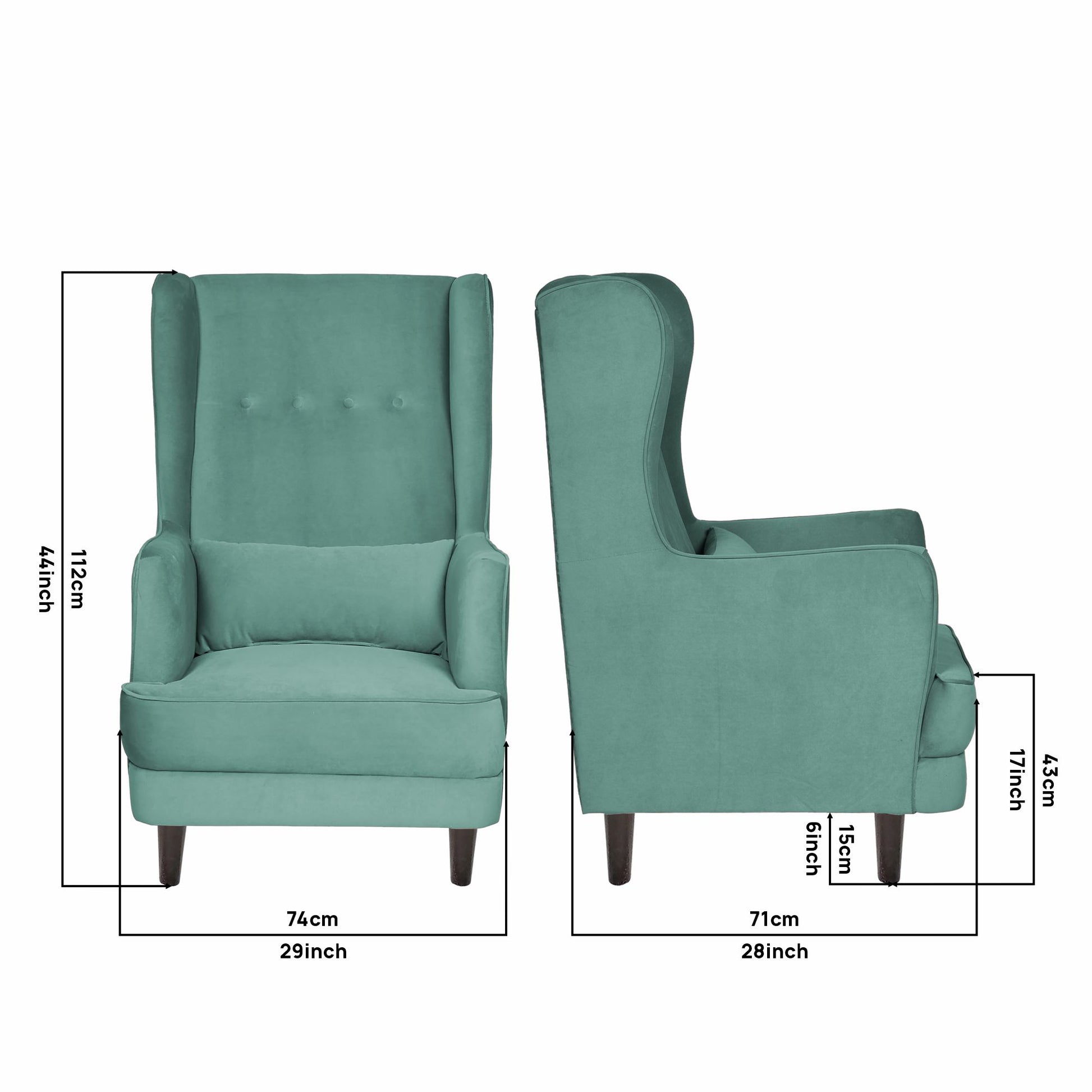 Mabel Tufted Wing Chair Solid Wood Living Room Chair- Sea Green