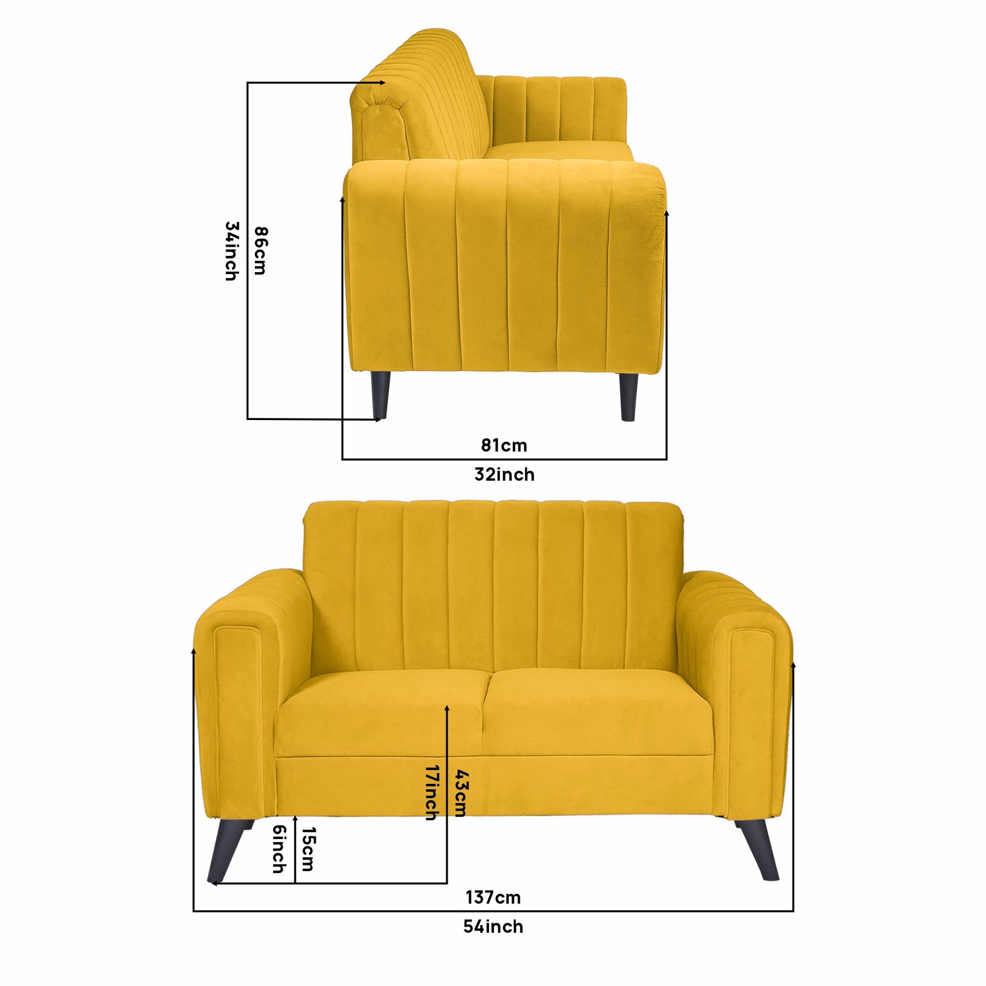 Mabel Two Seater Quilted Back Sofa Fabric 2 Seater Sofa - Yellow