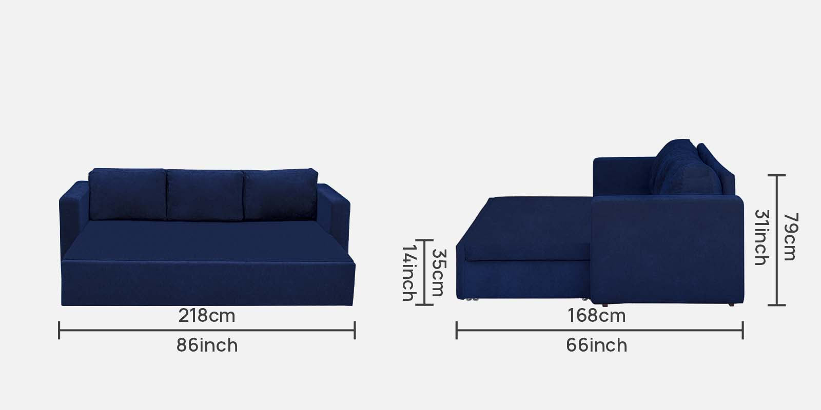 Magnet Fabric 3 Seater Sofa Bed With Loose Cushions and Storage - Royal Blue