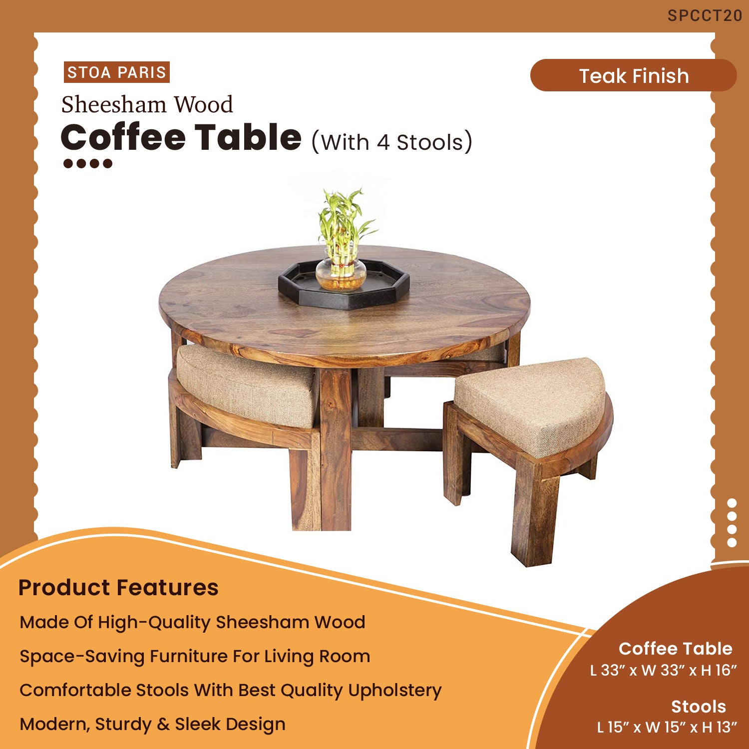 - Dimensions : Coffee Table : L33" x W33" x H16"