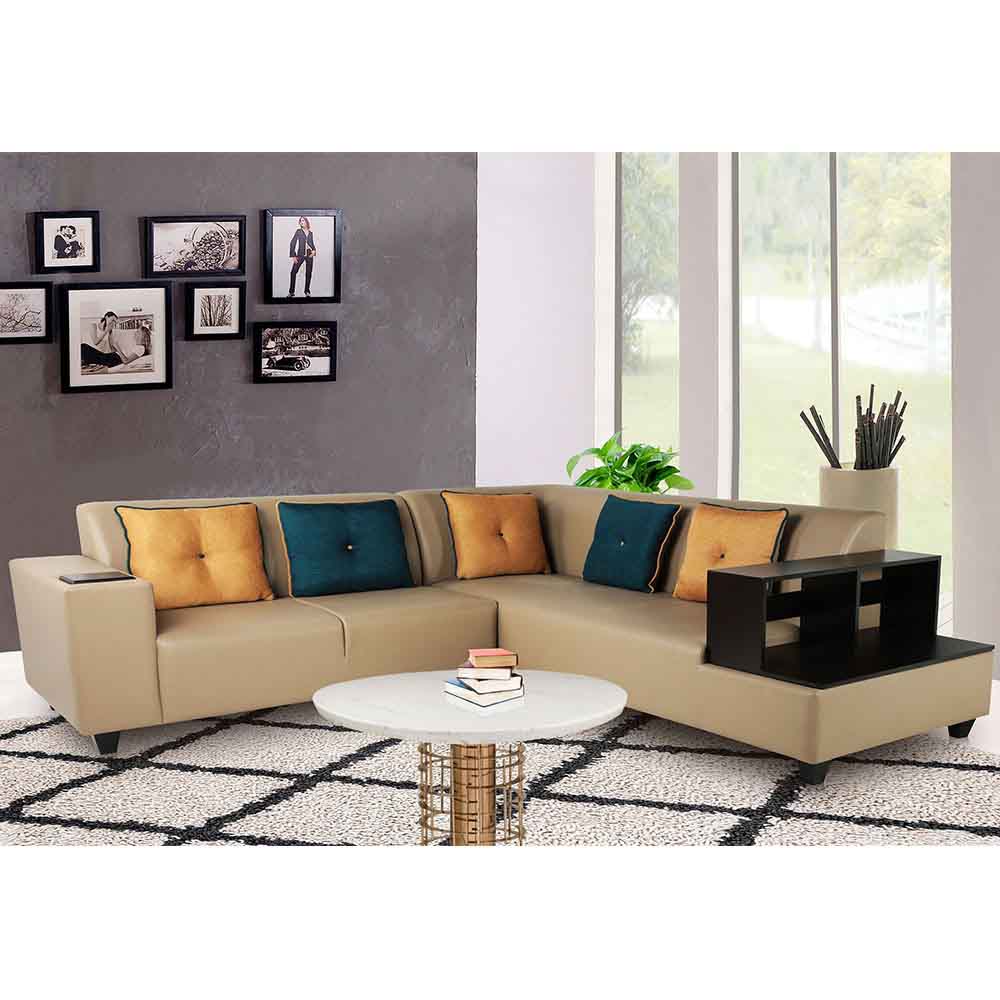 ARRA Martin Corner L Shape Sofa 5 Seater Left. A posh spot get together with close friends for cocktails and conversation, this stylish sectional is sure to be the talk of your entertaining event. Drawing inspiration from modern days’ requirements, this straight line contemporary piece is an ever-elusive anchor for your living room. Founded atop solid wood feet, its frame is crafted of kiln-dried solid wood and ply wood, wrapped in beige leatherette with colorful tufted cushions for that classy modern looks. Even if you're not hosting guests for the evening, you'll still love sprawling out over these seats as you flip through your favorite magazines or watch a movie and snack on bowls of crunchy popcorn.