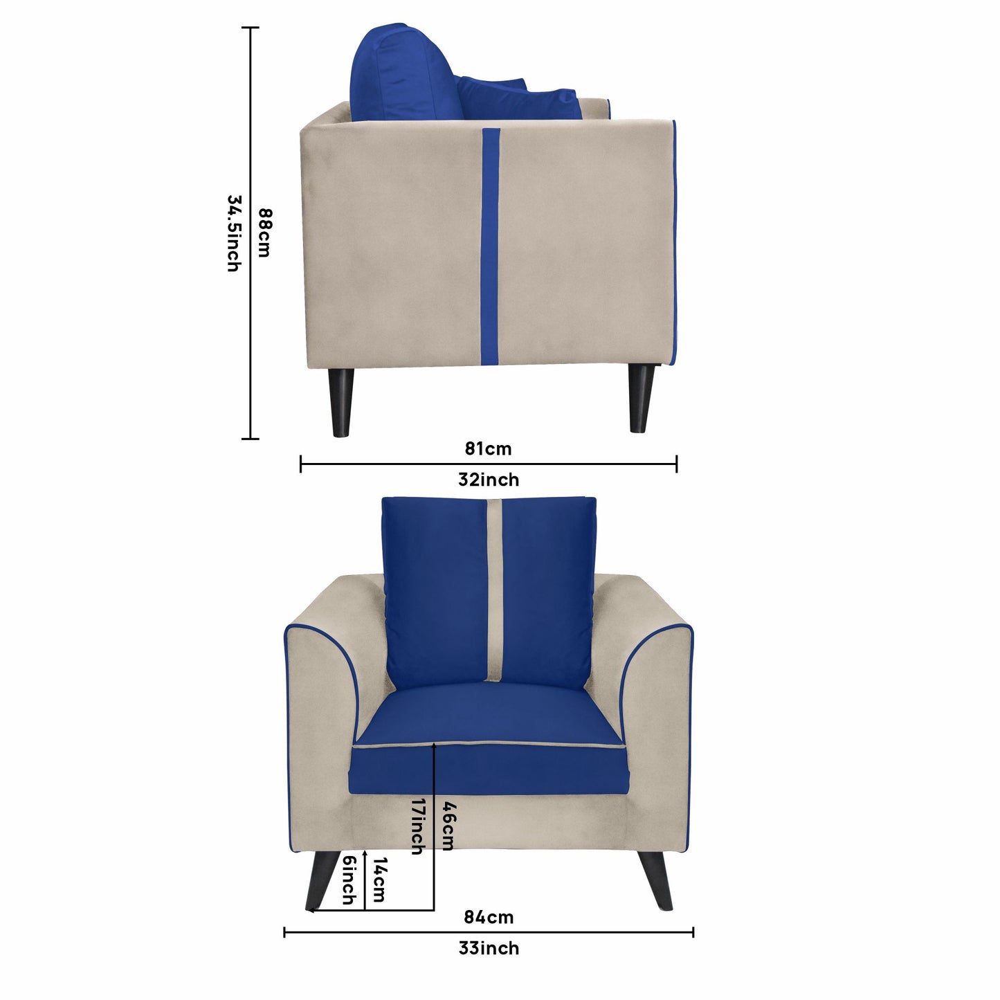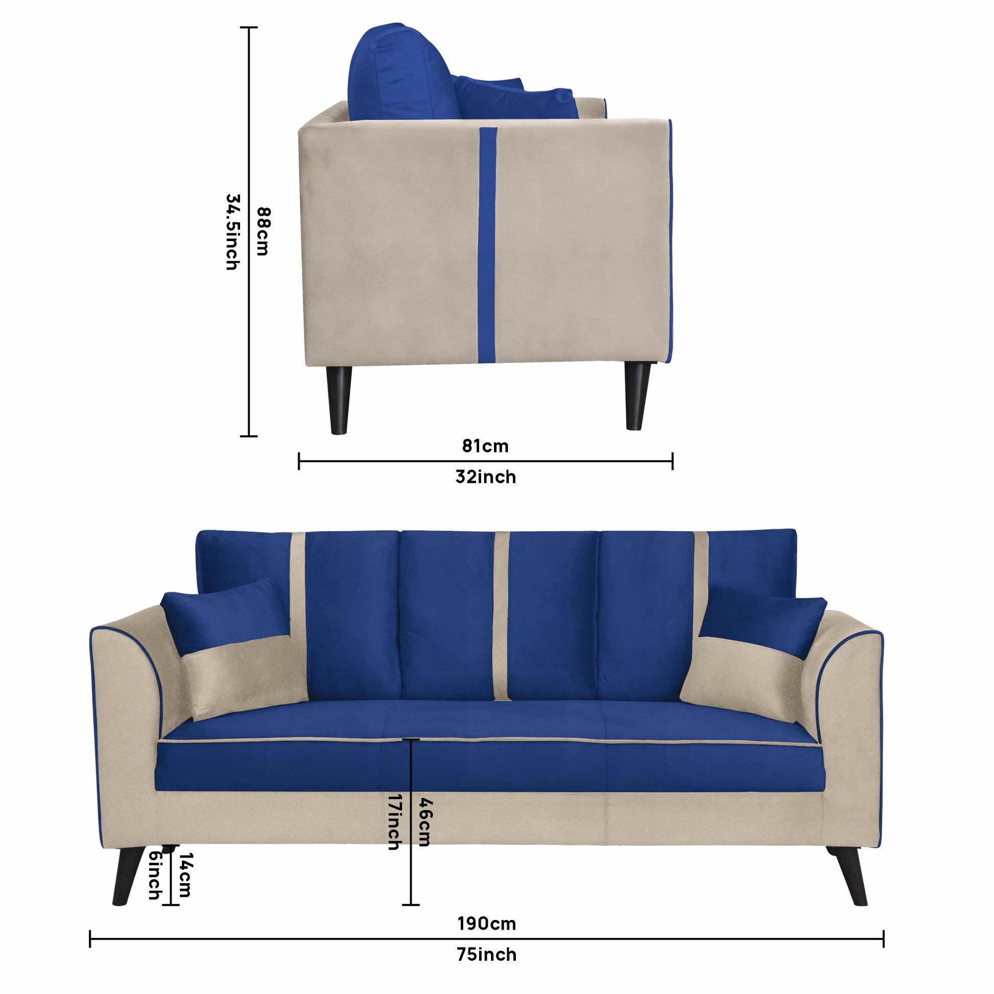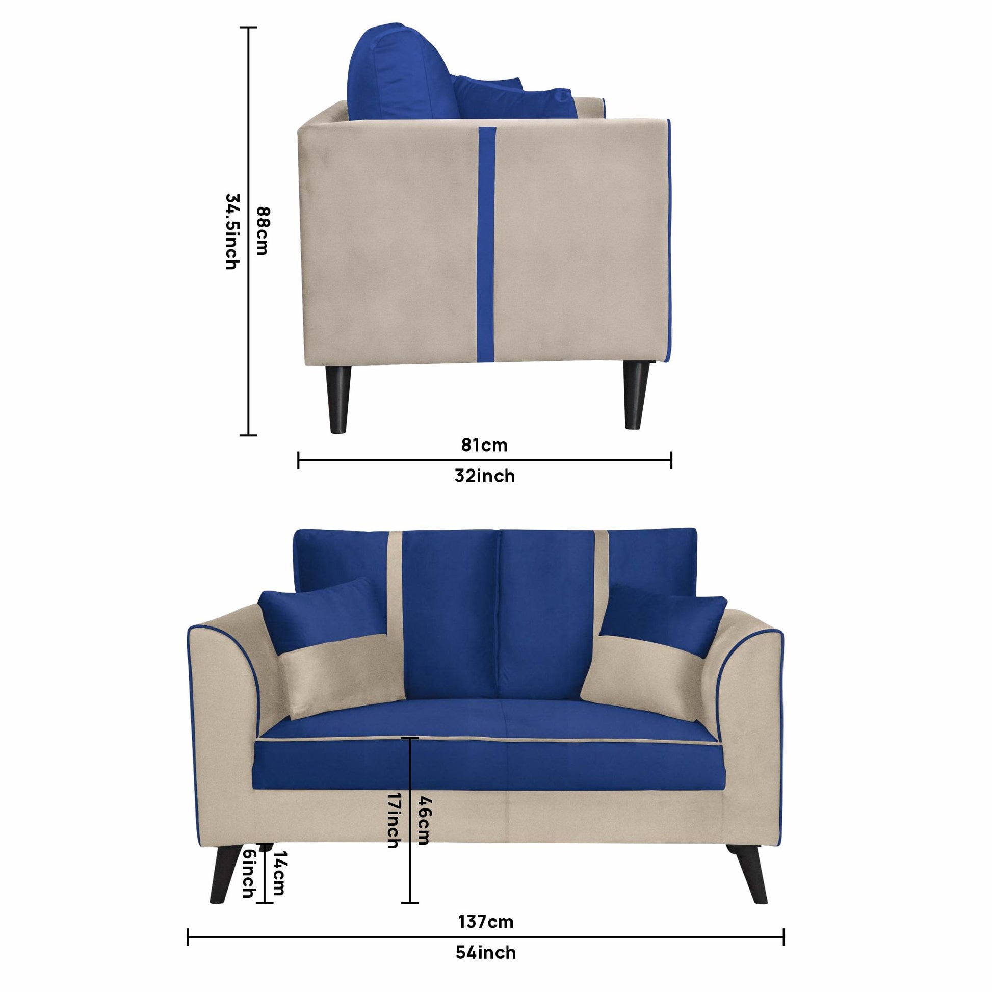 Mason Cushion Back Fabric Sofa - Beige & Blue