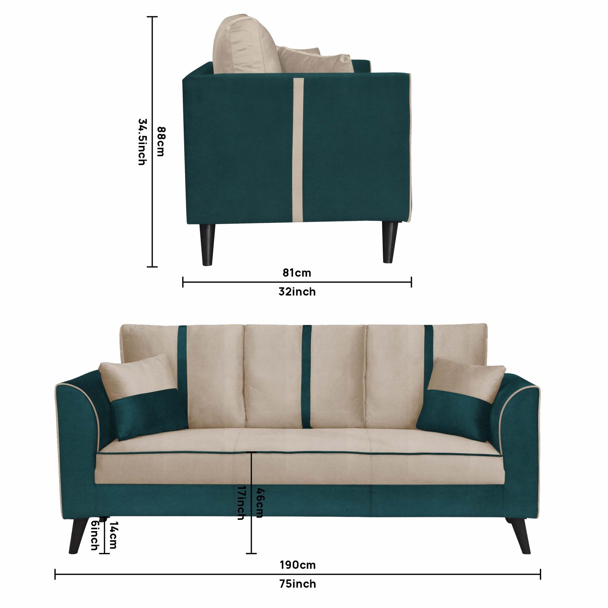 Mason Cushion Back Fabric Sofa - Green & Beige