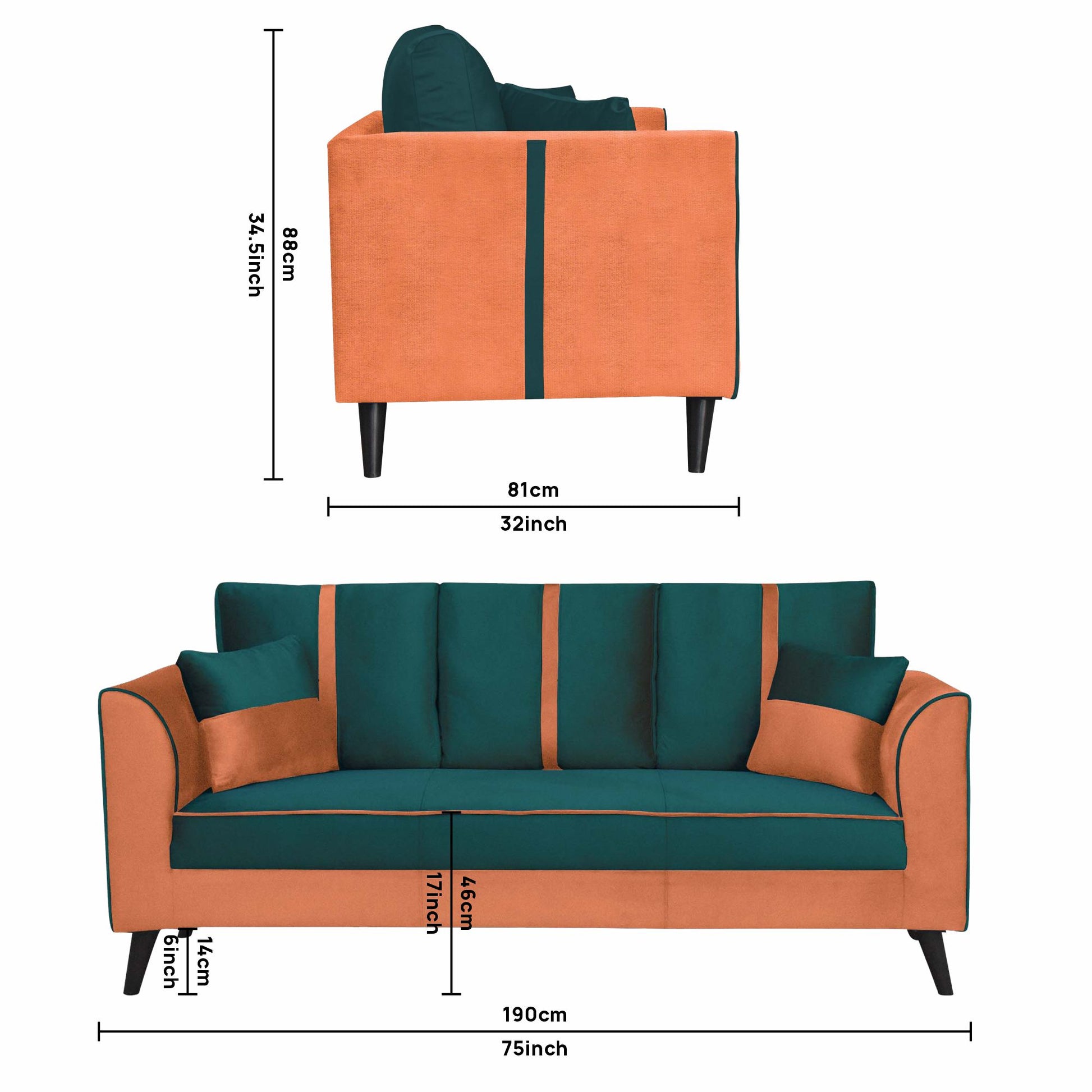 Mason Cushion Back Fabric Sofa - Orange & Green