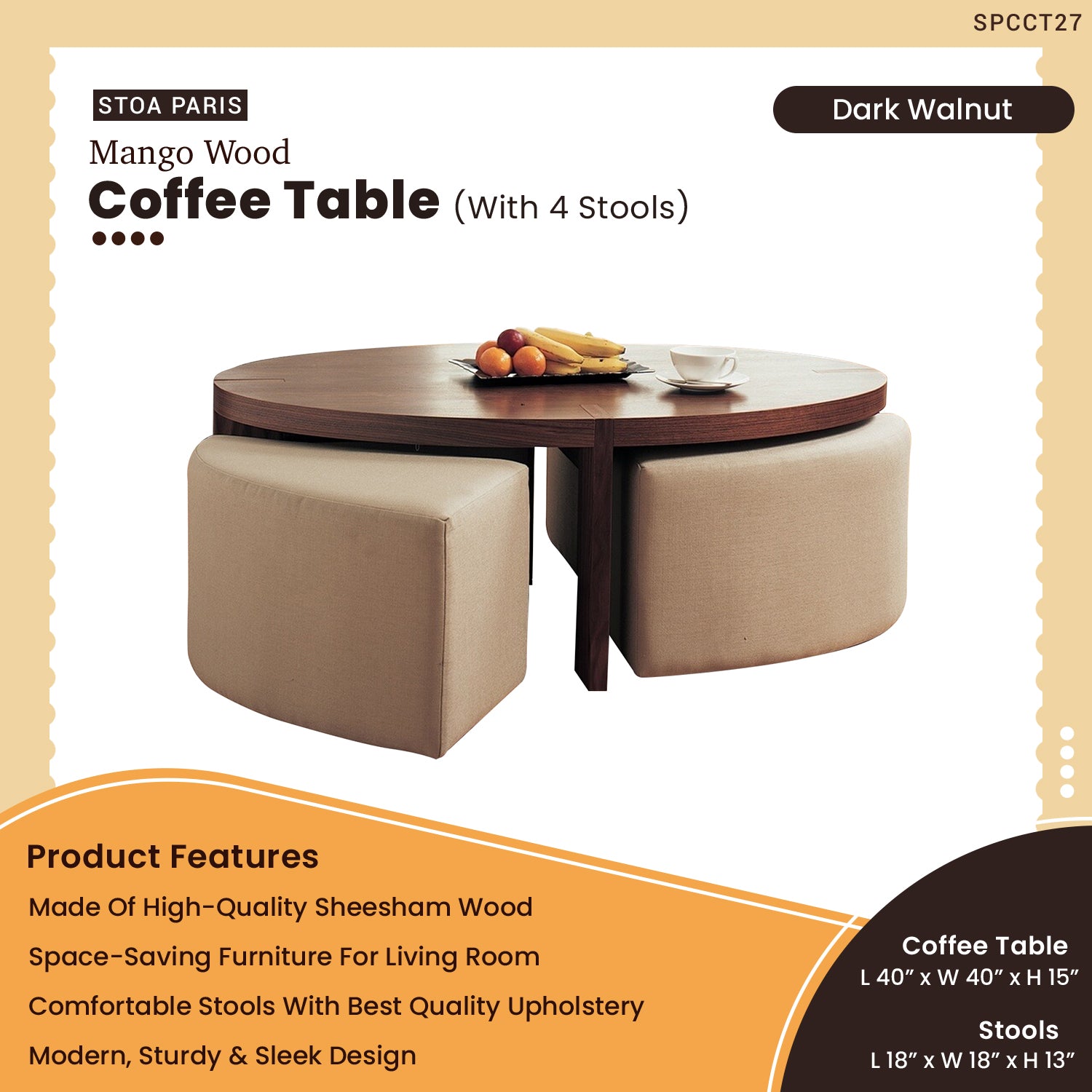 McLaren - Solid Wood Coffee Table With 4 Stools - Dark Walnut
