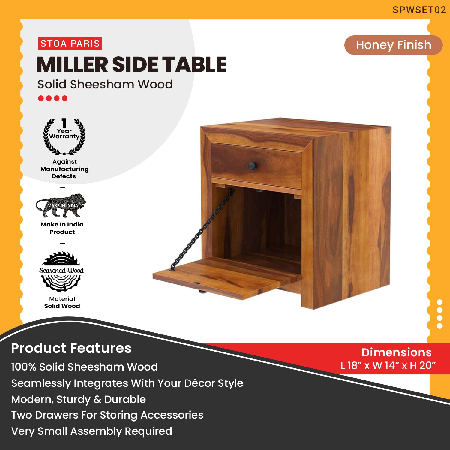 Miller - Solid Sheesham Wood Side Table With Drawer & Bottom Storage Compartment