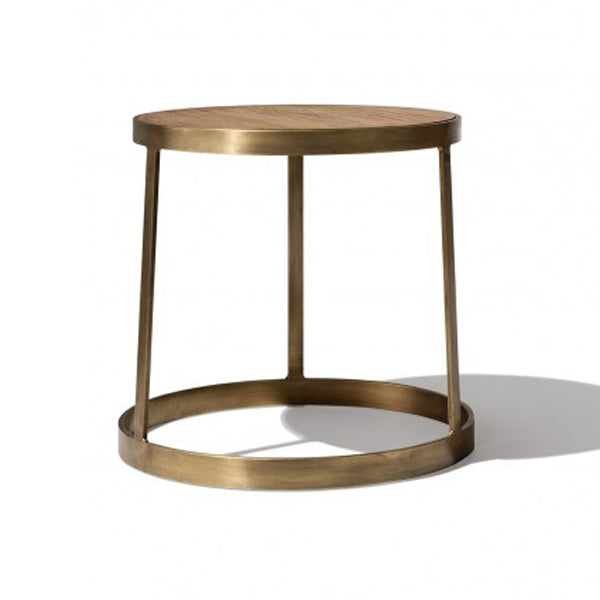 Mopatis - Metal Side Table With Wooden Top In Brushed Gold & Natural Top Finish
