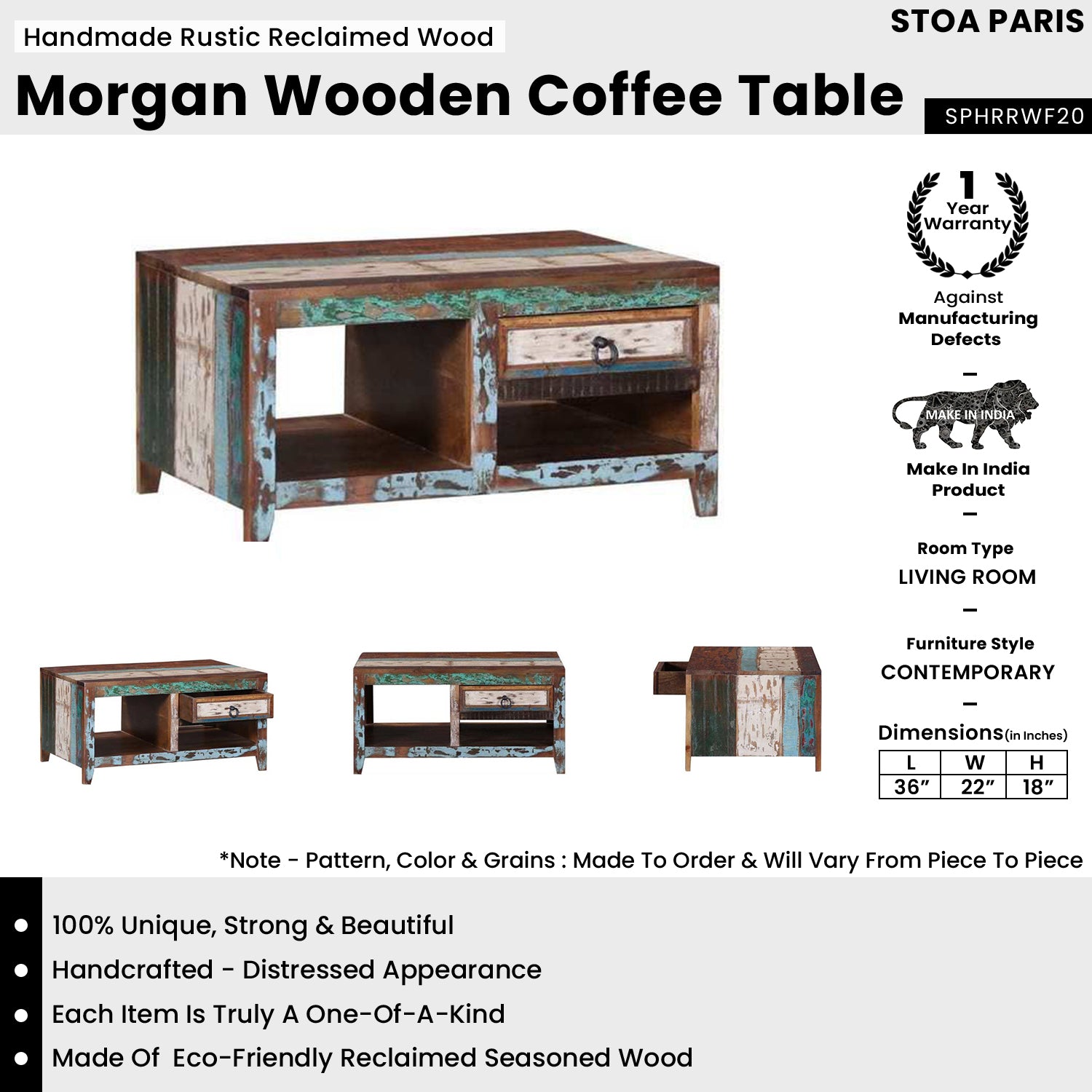 Morgan - Handmade Rustic Reclaimed Wood Coffee Table In Distress Polish Shade