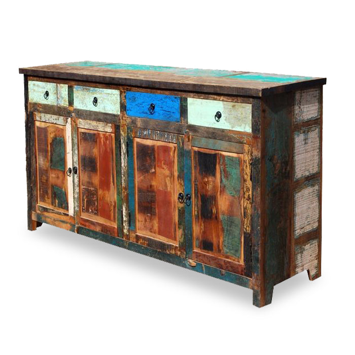 - This multicolored sideboard cum cabinet made from old reclaimed wood addresses the storage requirements with 4 drawers and 2 double door