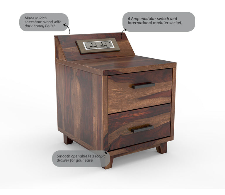 Naman - Rustic Recharge Side Table In Sheeshaam Wood - Teak