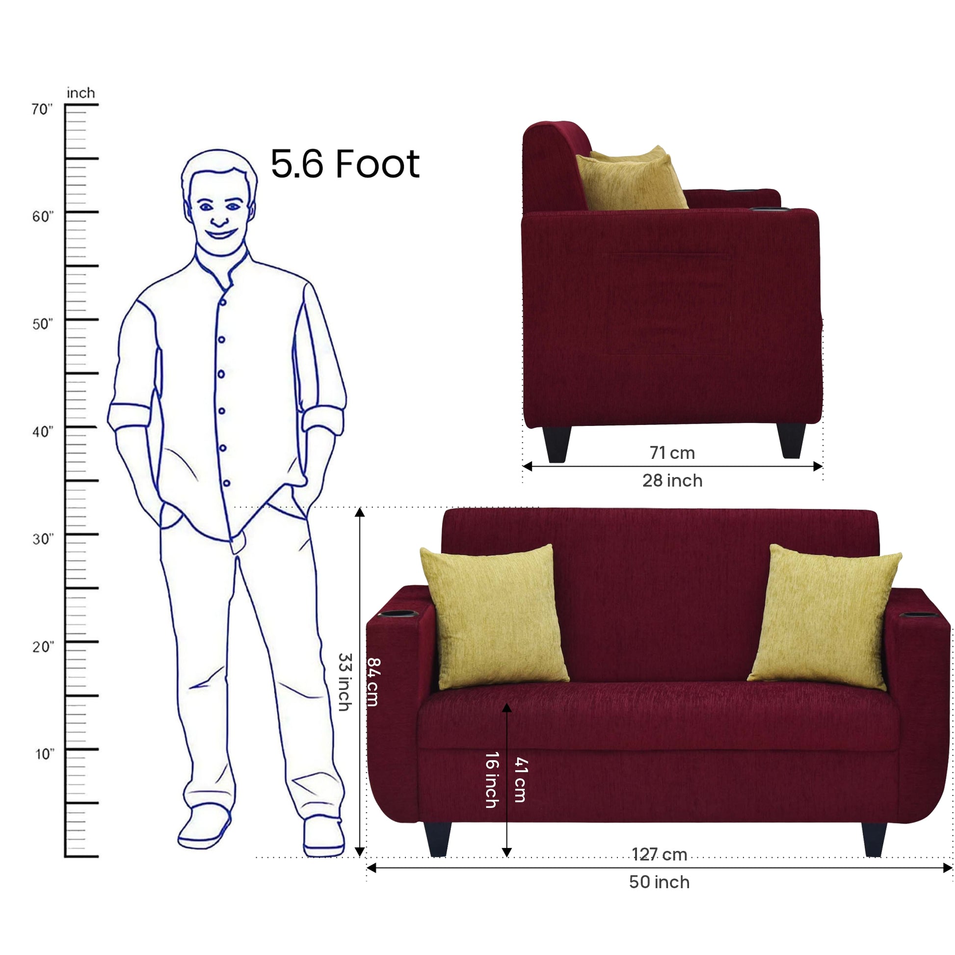 2 Seater : 50L x 28W x 33H (cms)