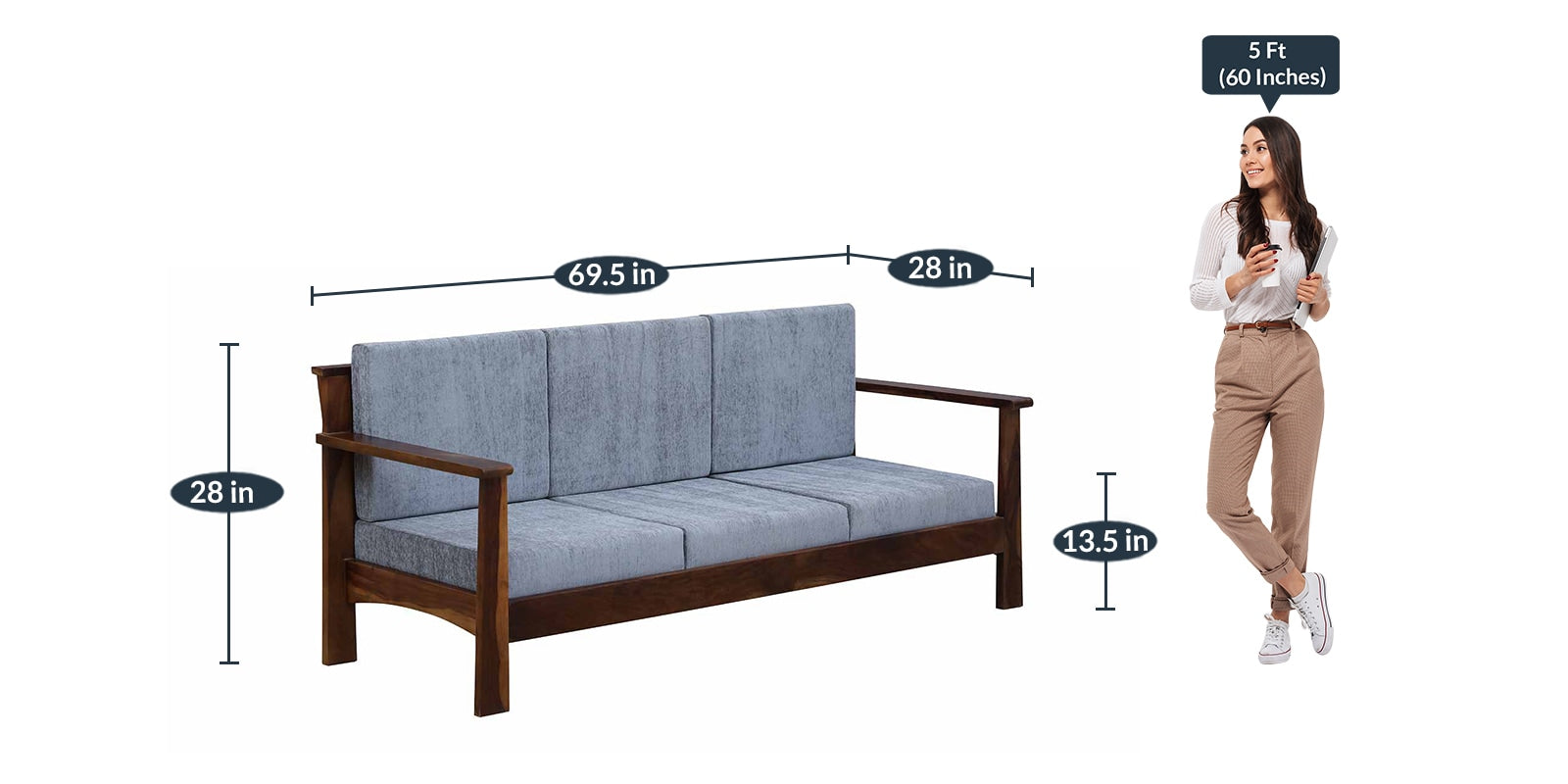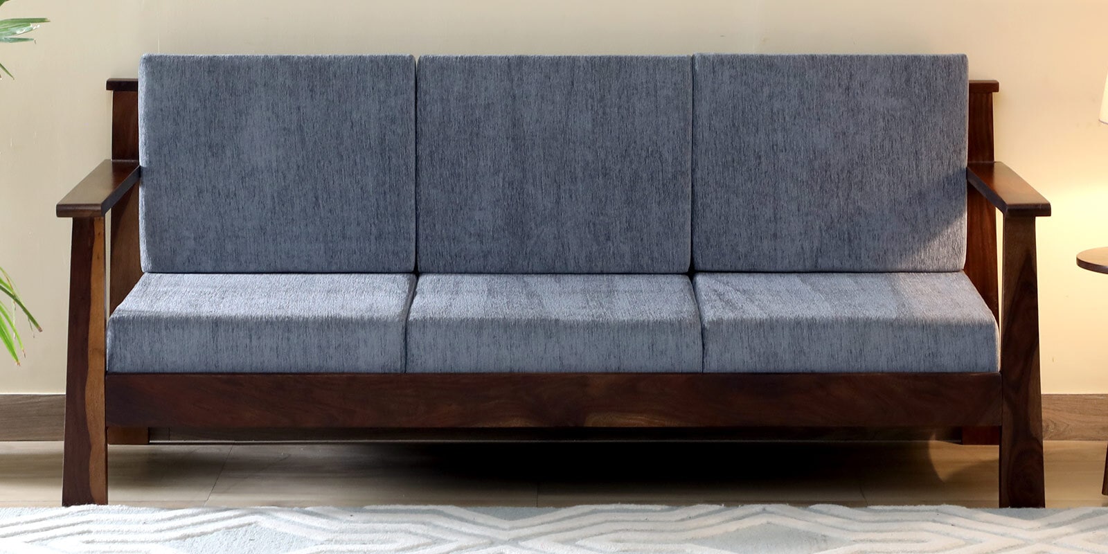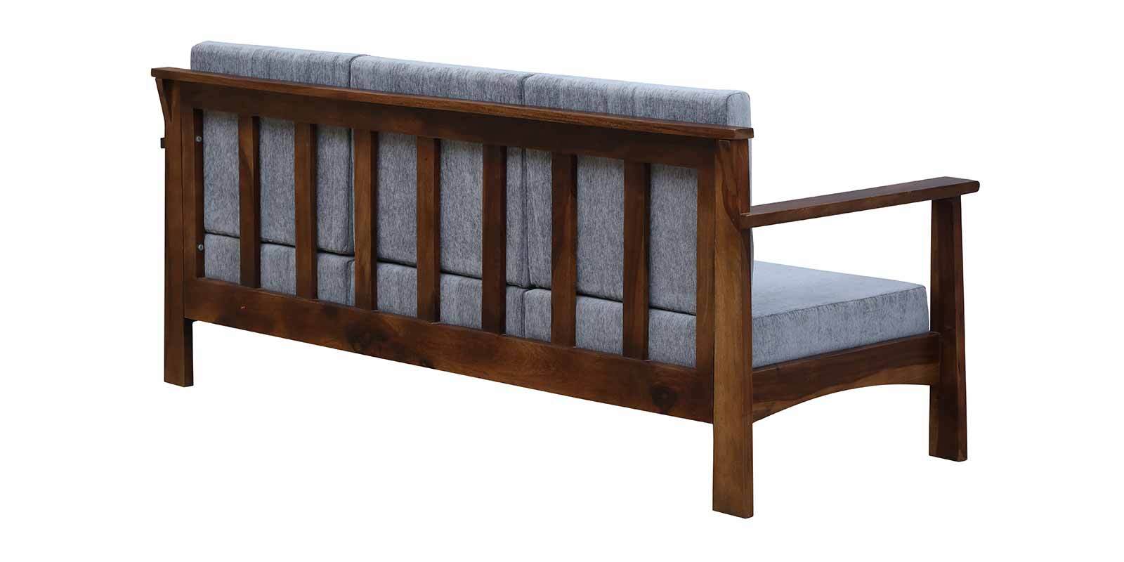 Ohio - Sheesham Wood 3 Seater Sofa In Teak Finish - Grey