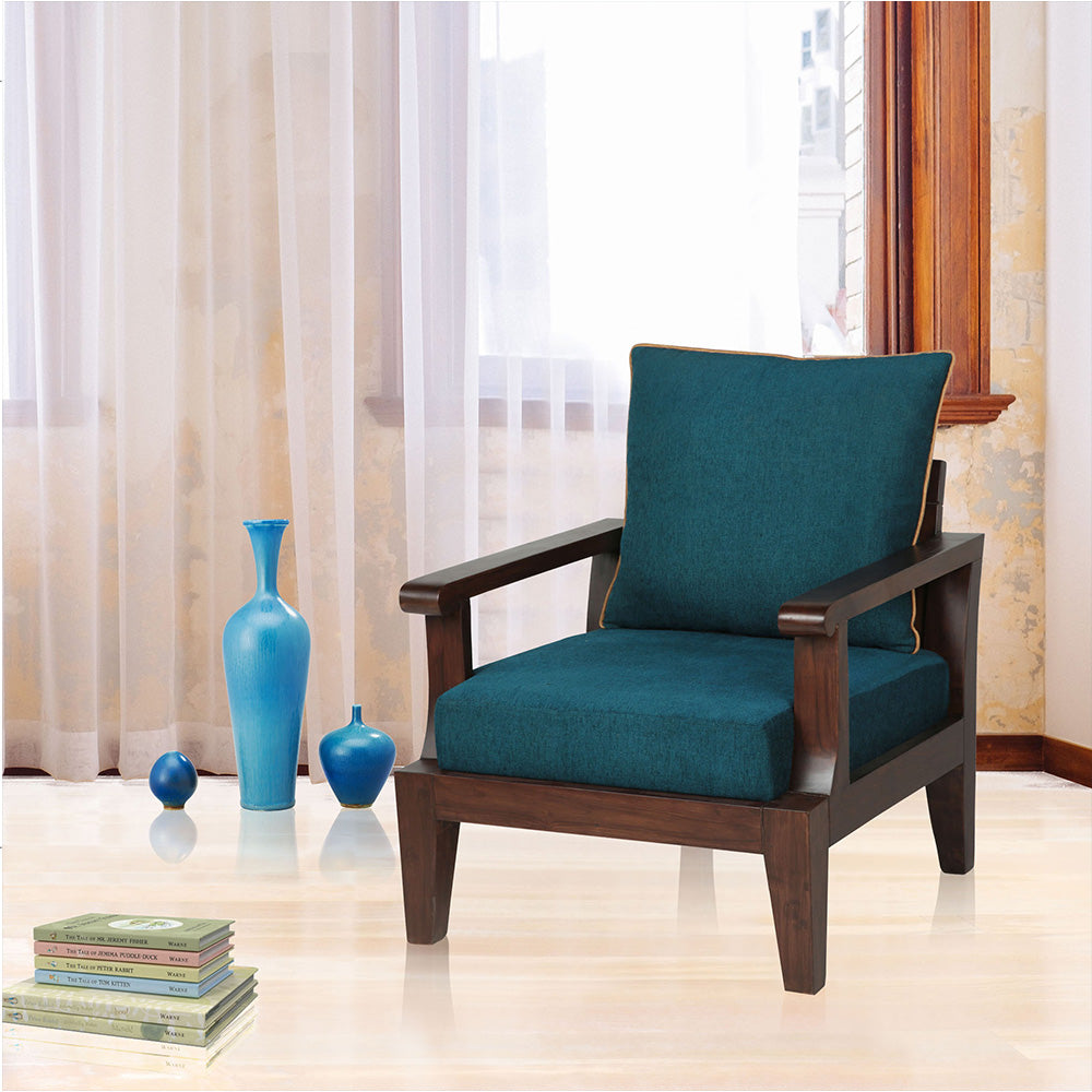 Ohio - Teak Wood 1 Seater Sofa - Blue