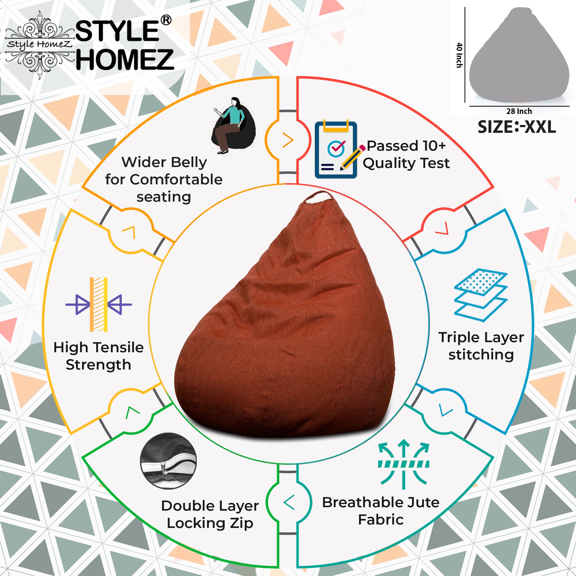 - Sourced from the Best of the Best and Stitched in a soft Jute fabric with premium look and feel and Organically good, the Style Homez Classic Jute Bean Bag bean bag is an ideal addition to your home or office decor