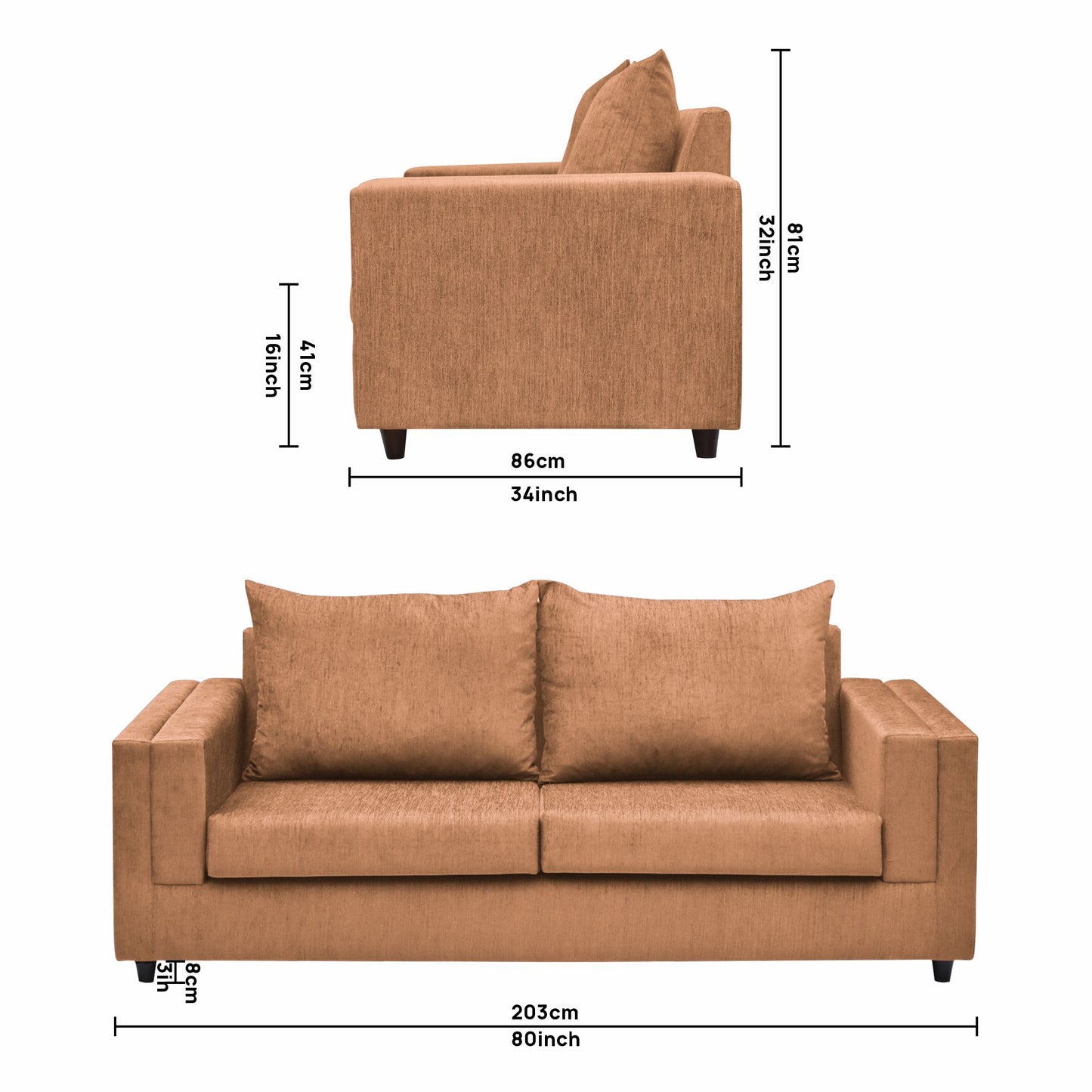 3 Seater : 203L x 86W x 81H (cms)