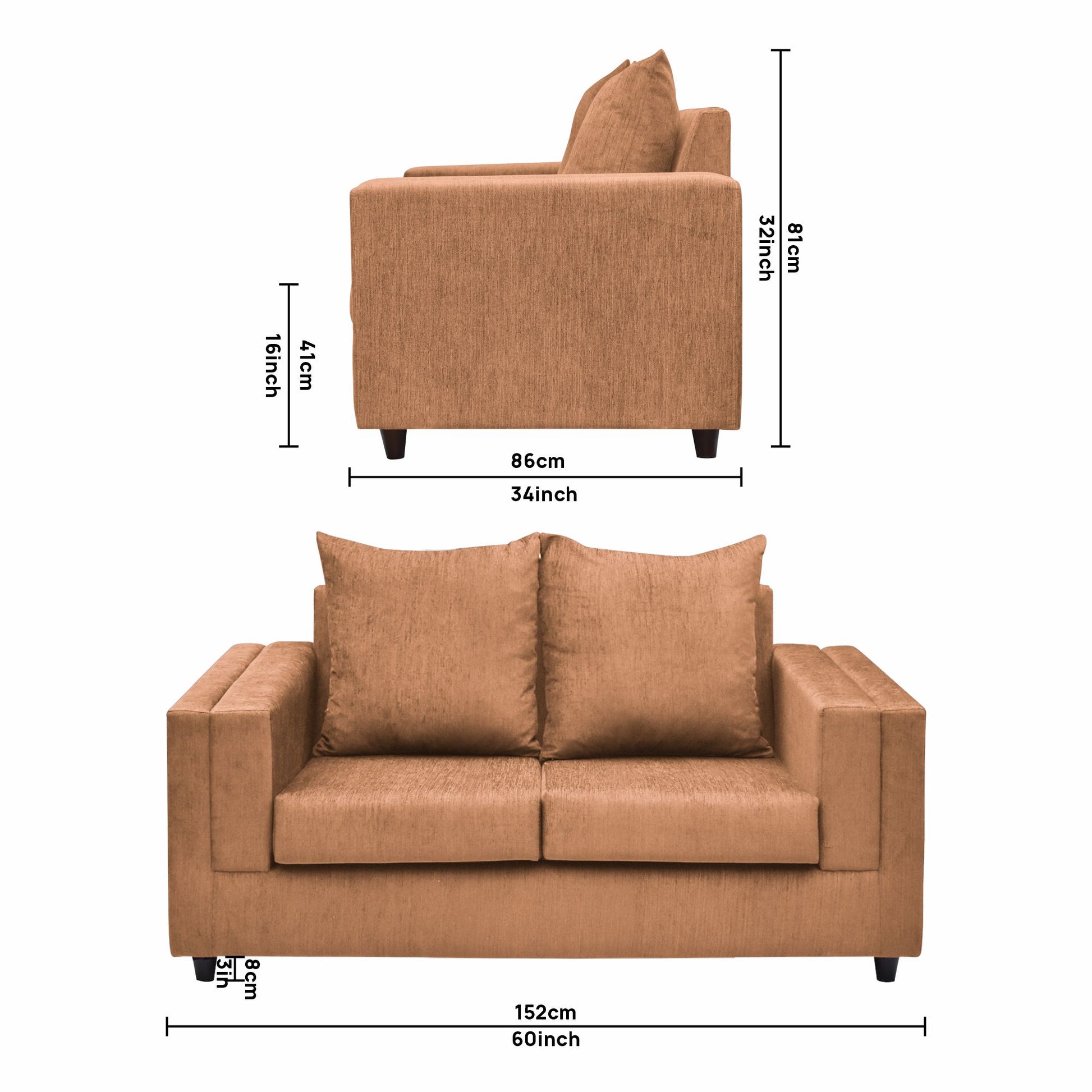 2 Seater : 152L x 86W x 81H (cms)