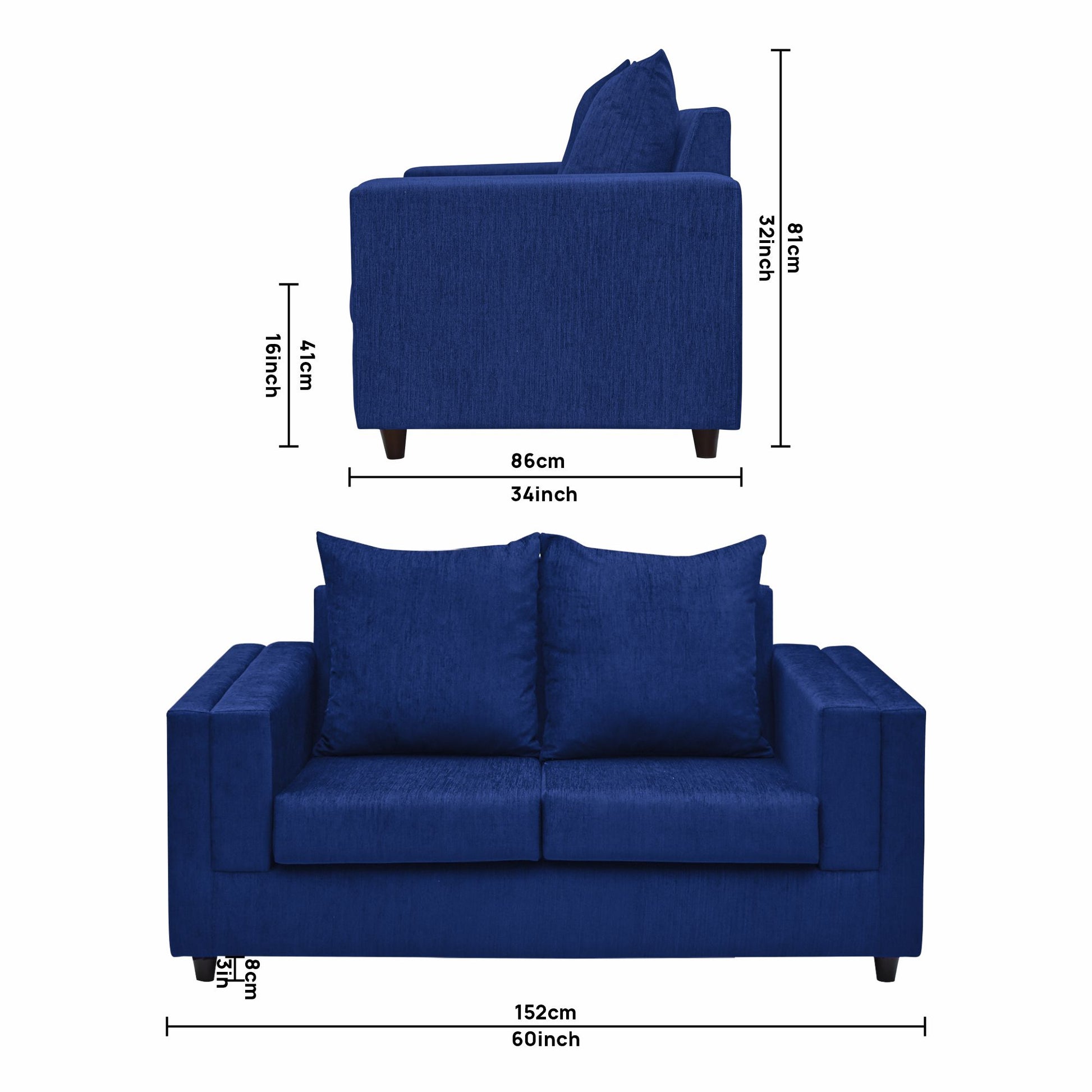 2 Seater : 152L x 86W x 81H (cms)