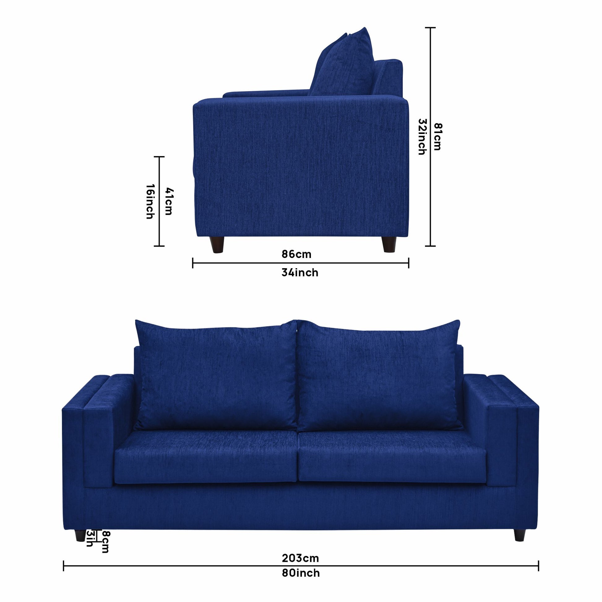 3 Seater : 203L x 86W x 81H (cms)