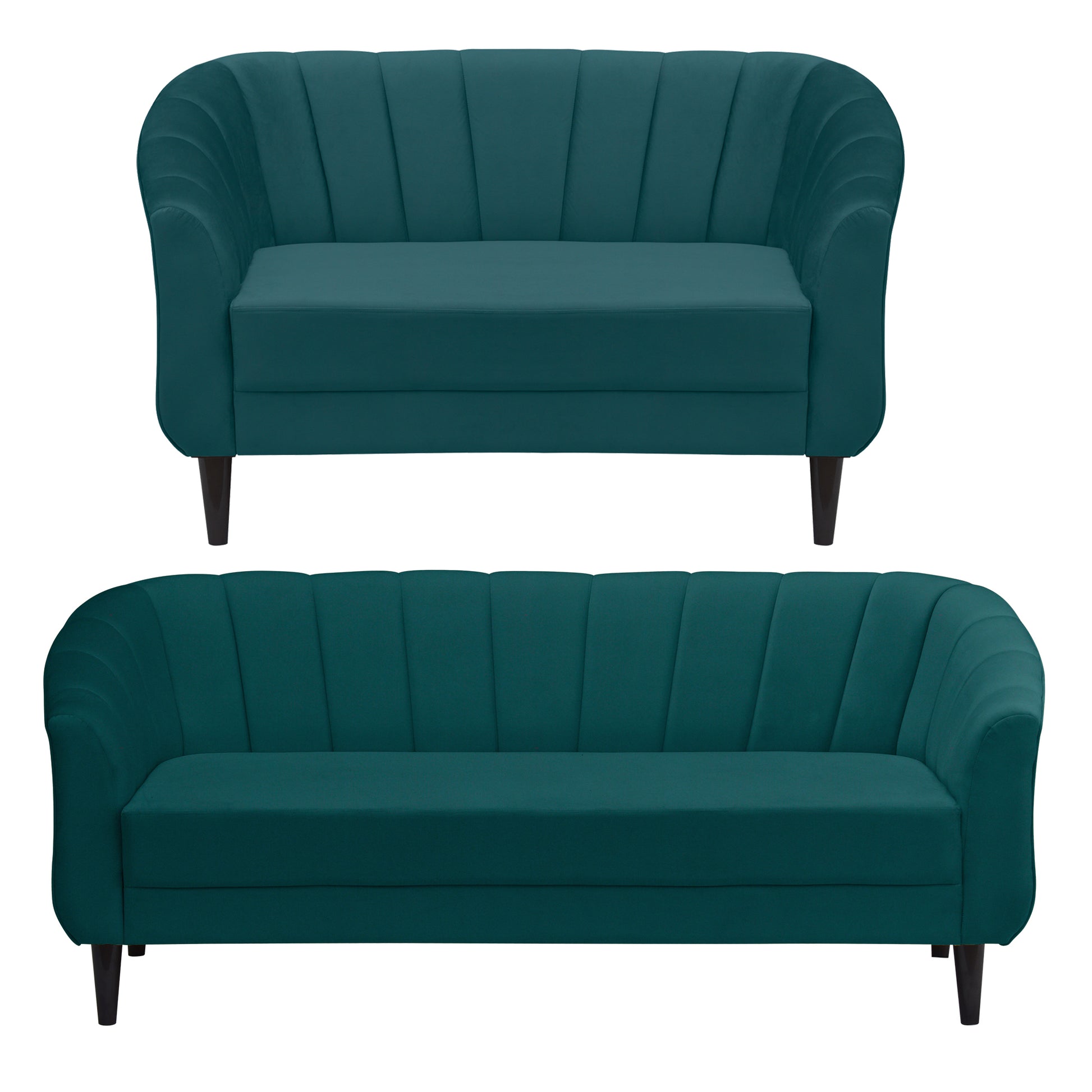Persia Quilted Back 3+2 Seater FabricSofa Set - Green