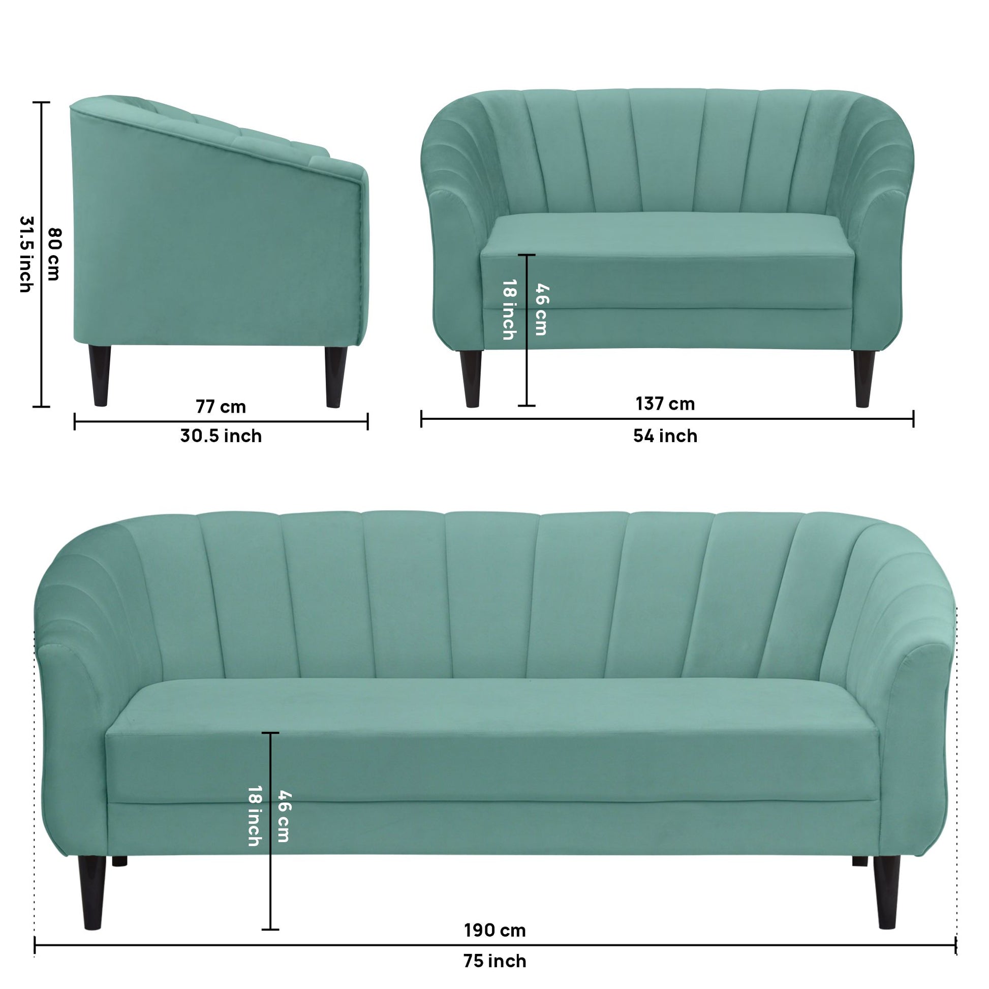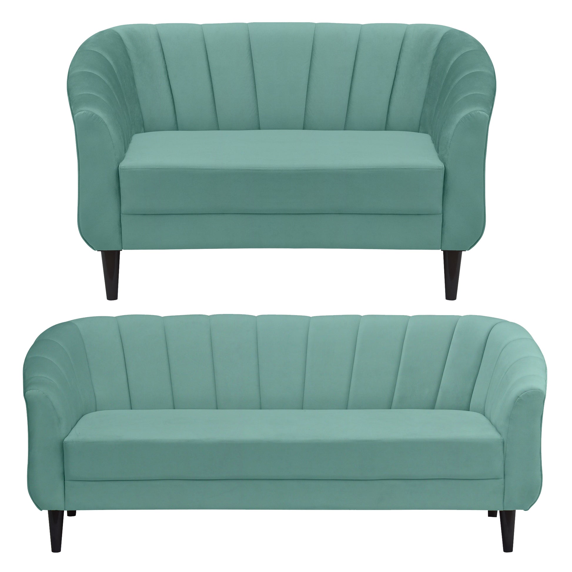 Persia Quilted Back 3+2 Seater FabricSofa Set - Sea Green