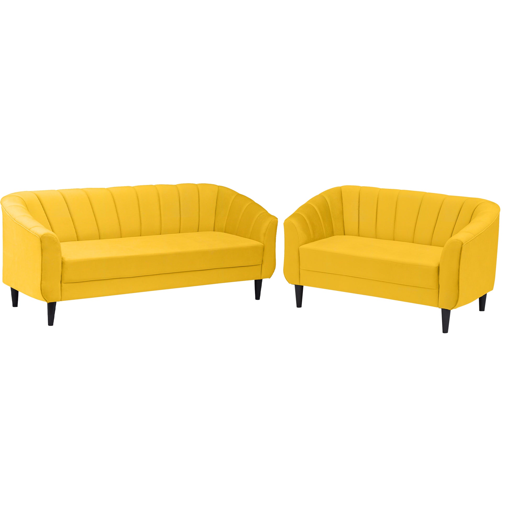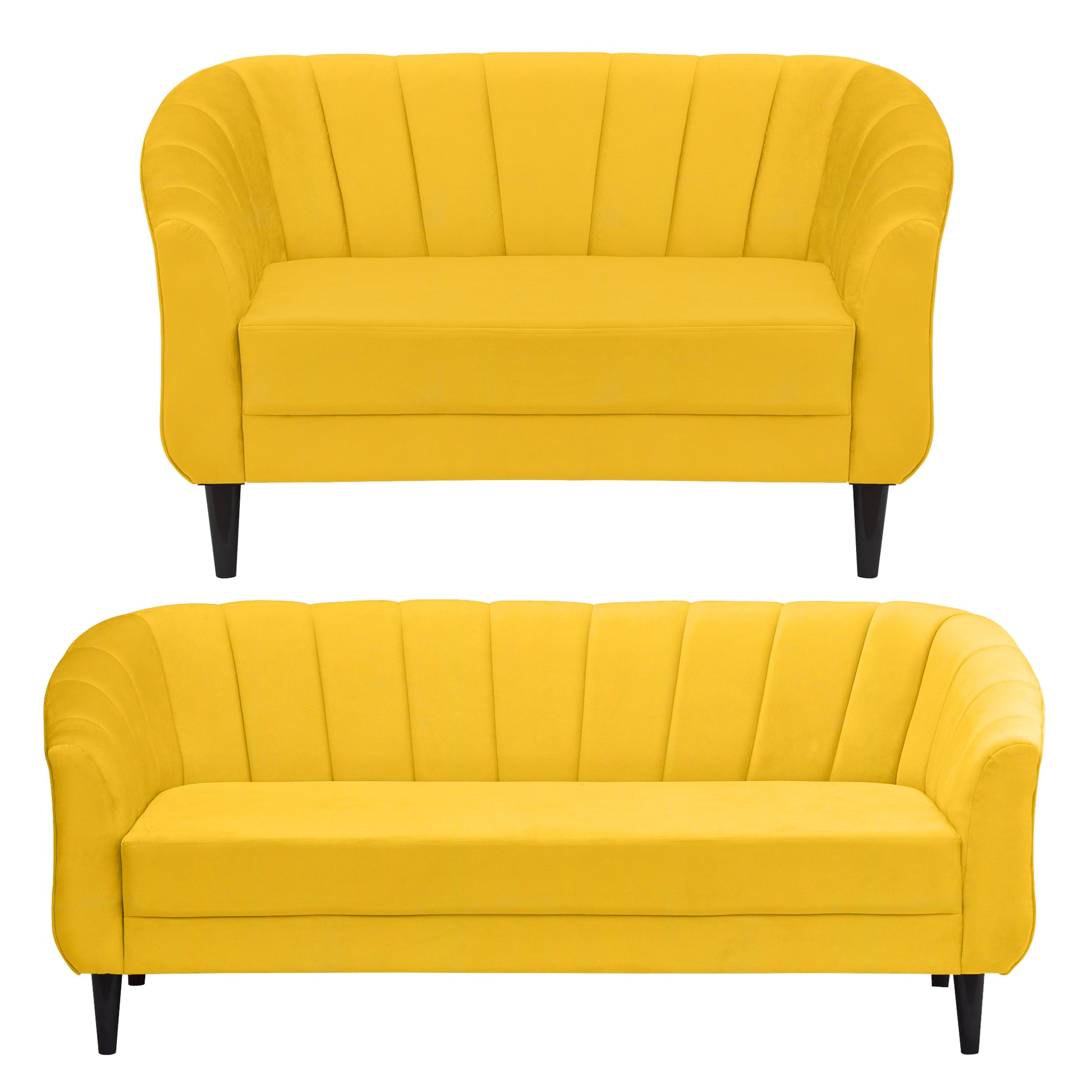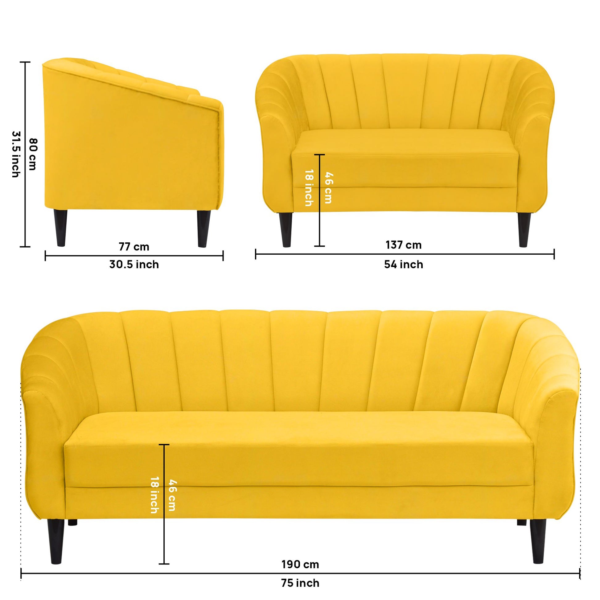 Persia Quilted Back 3+2 Seater FabricSofa Set - Yellow