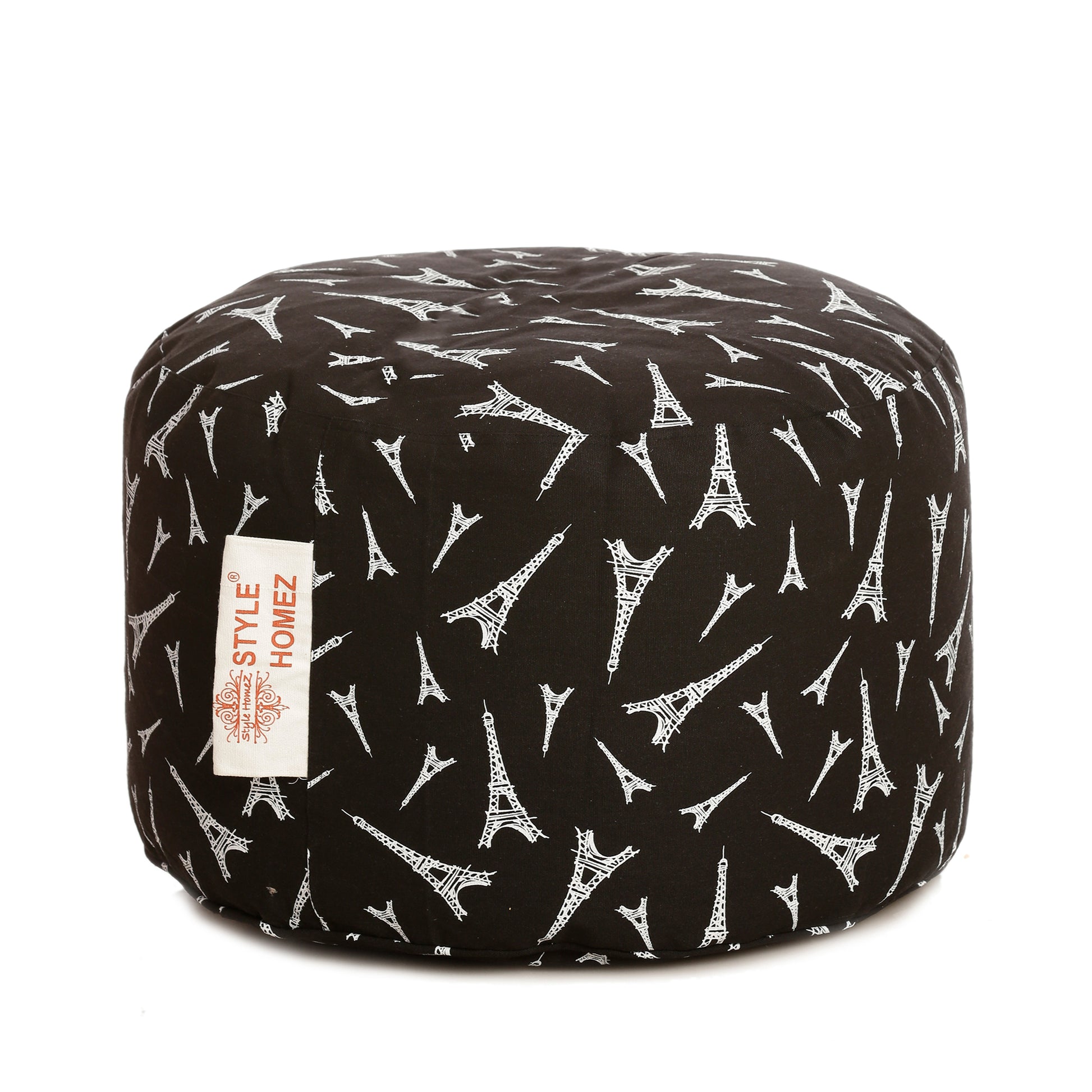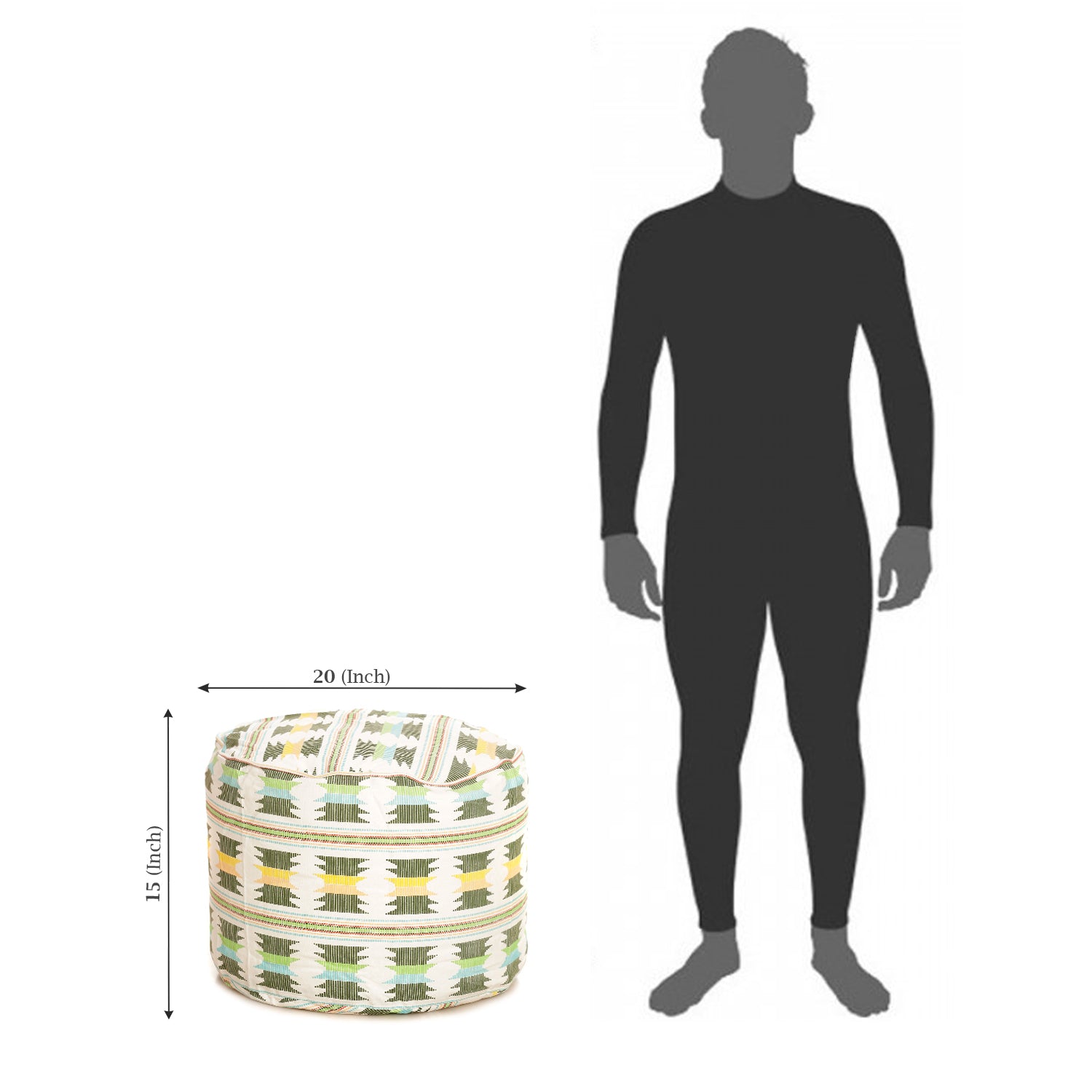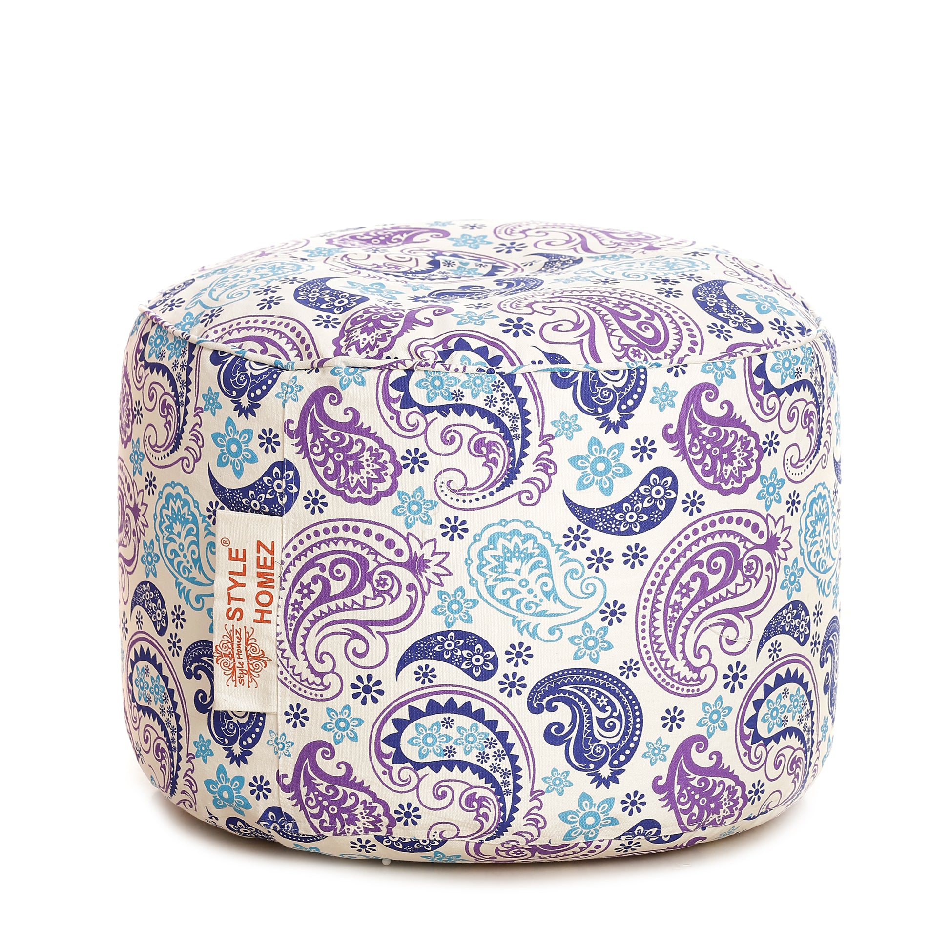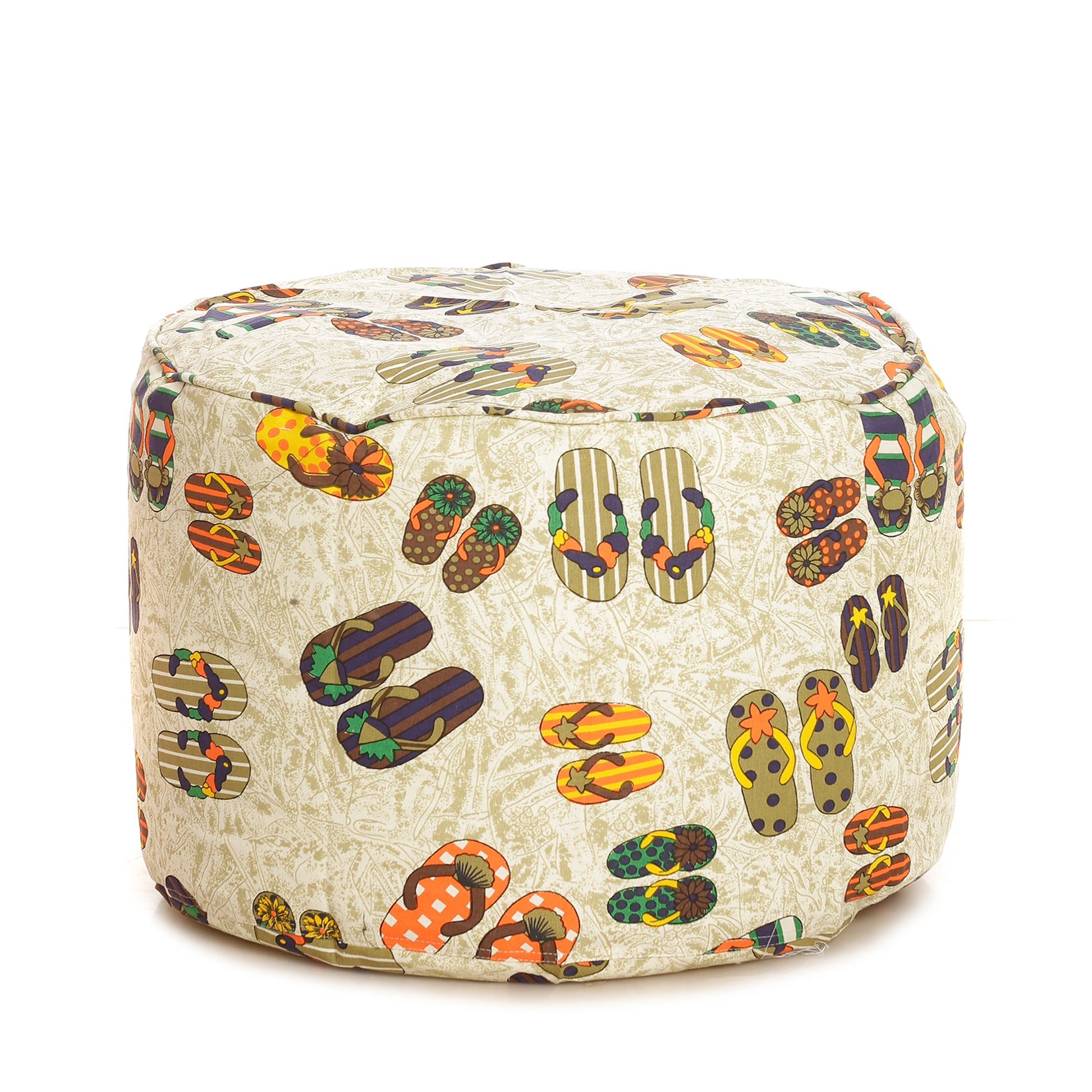 Round - Cotton Canvas Printed Ottoman Bean Stool - Large