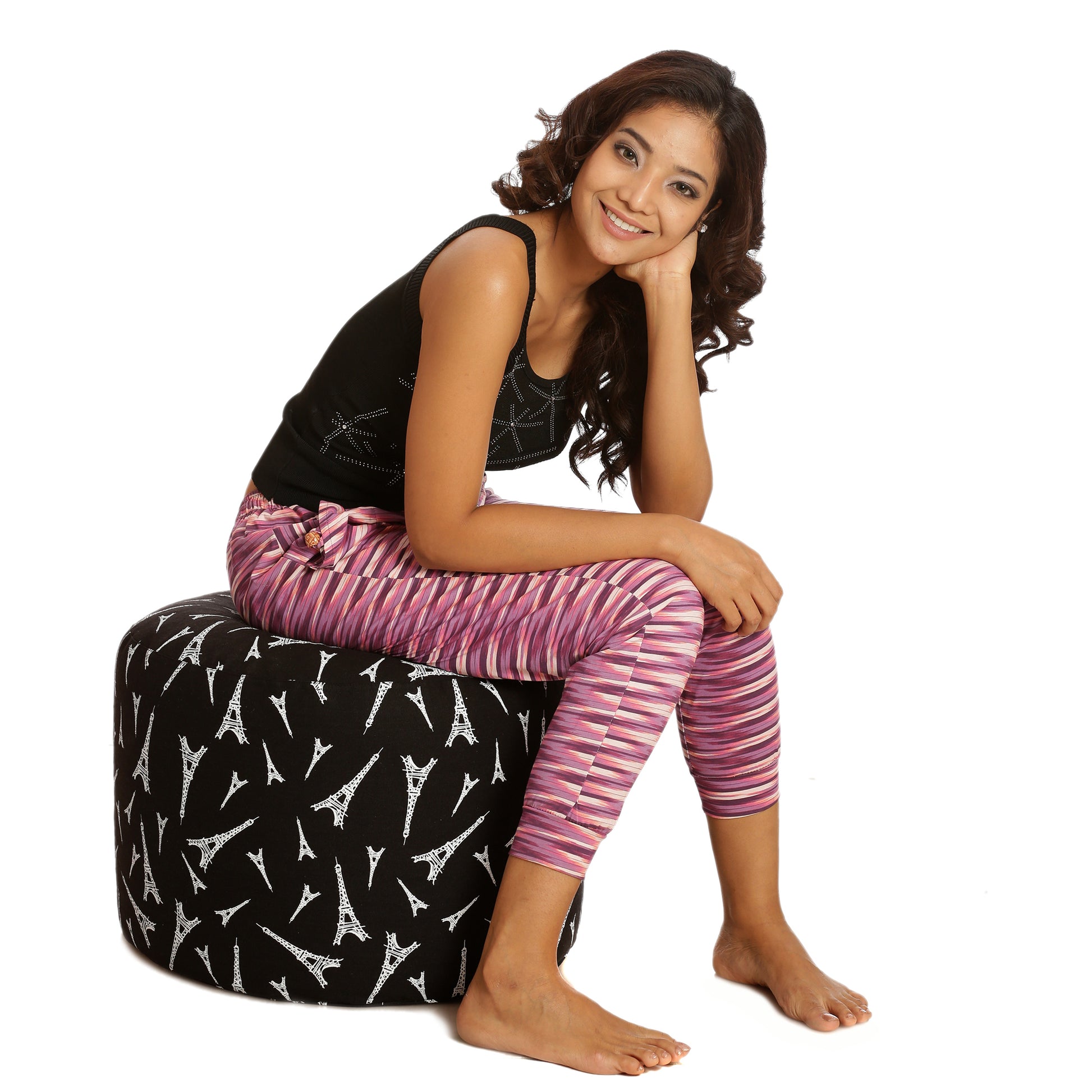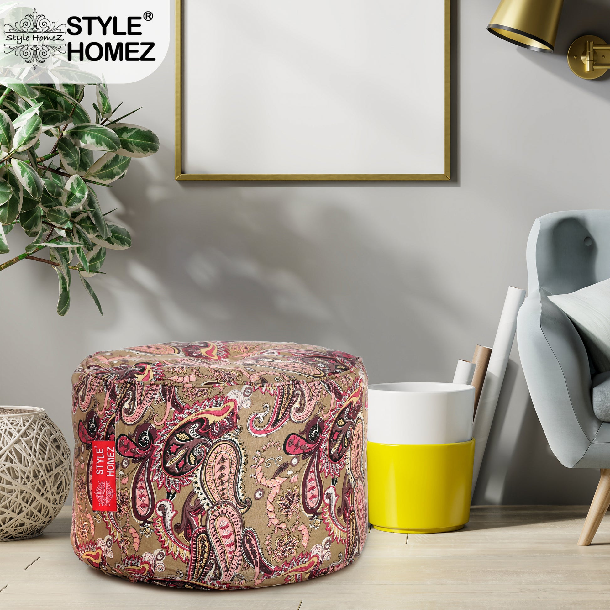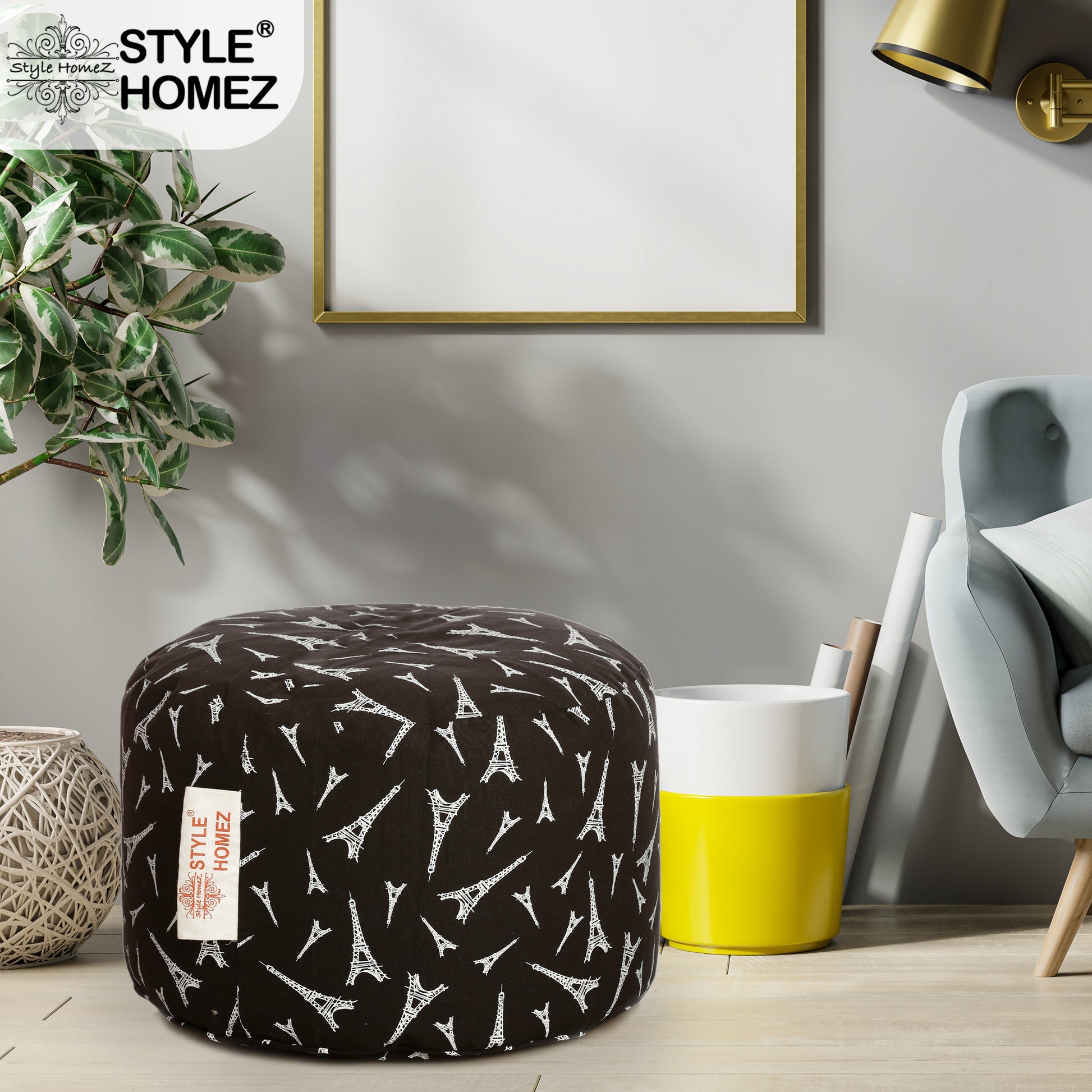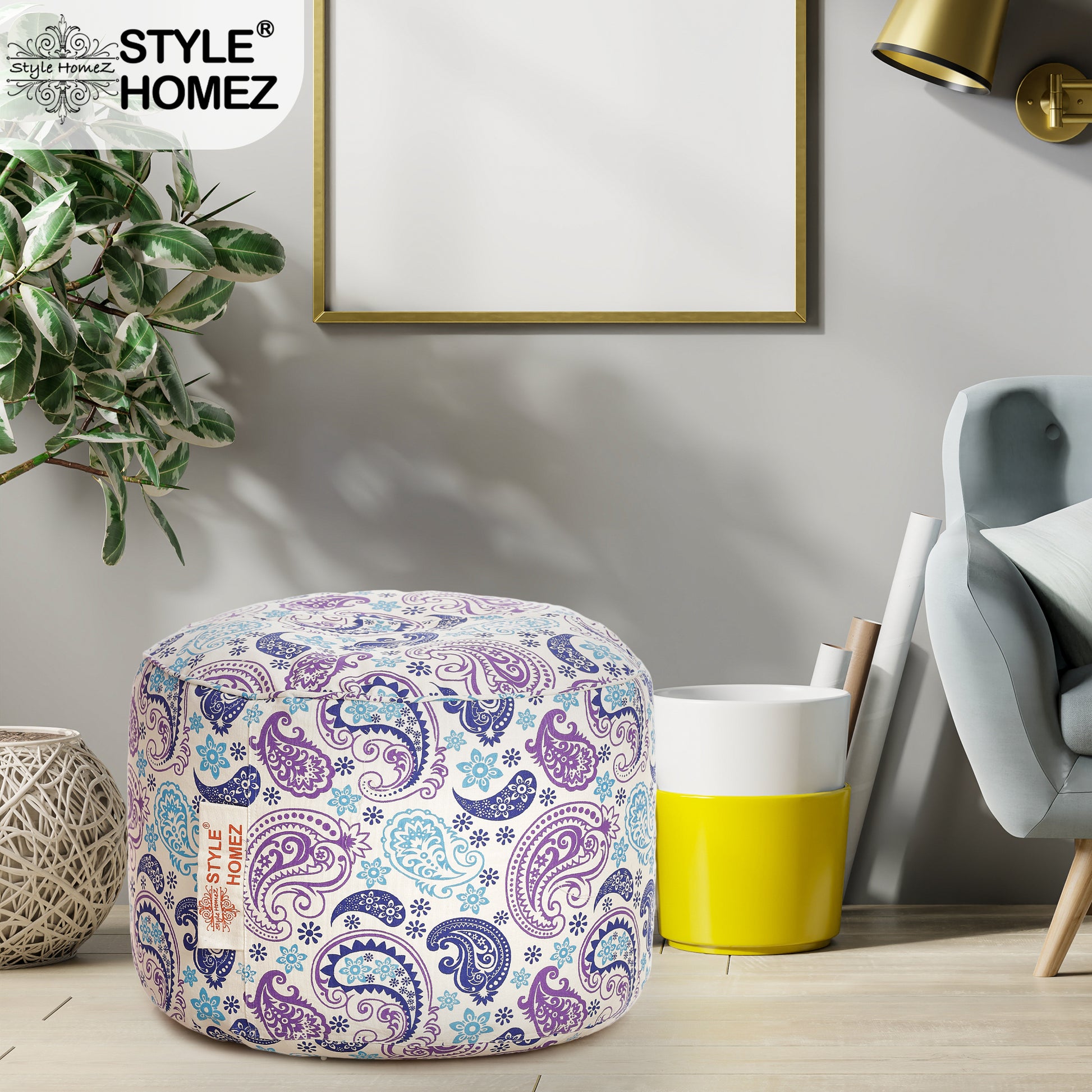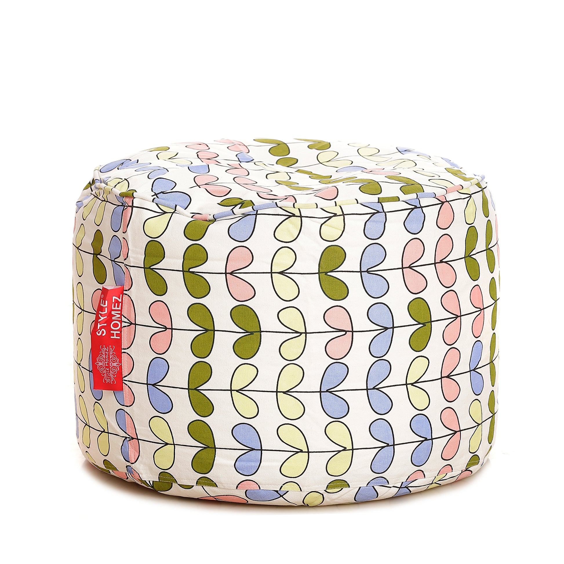 Round - Cotton Canvas Printed Ottoman Bean Stool - Large