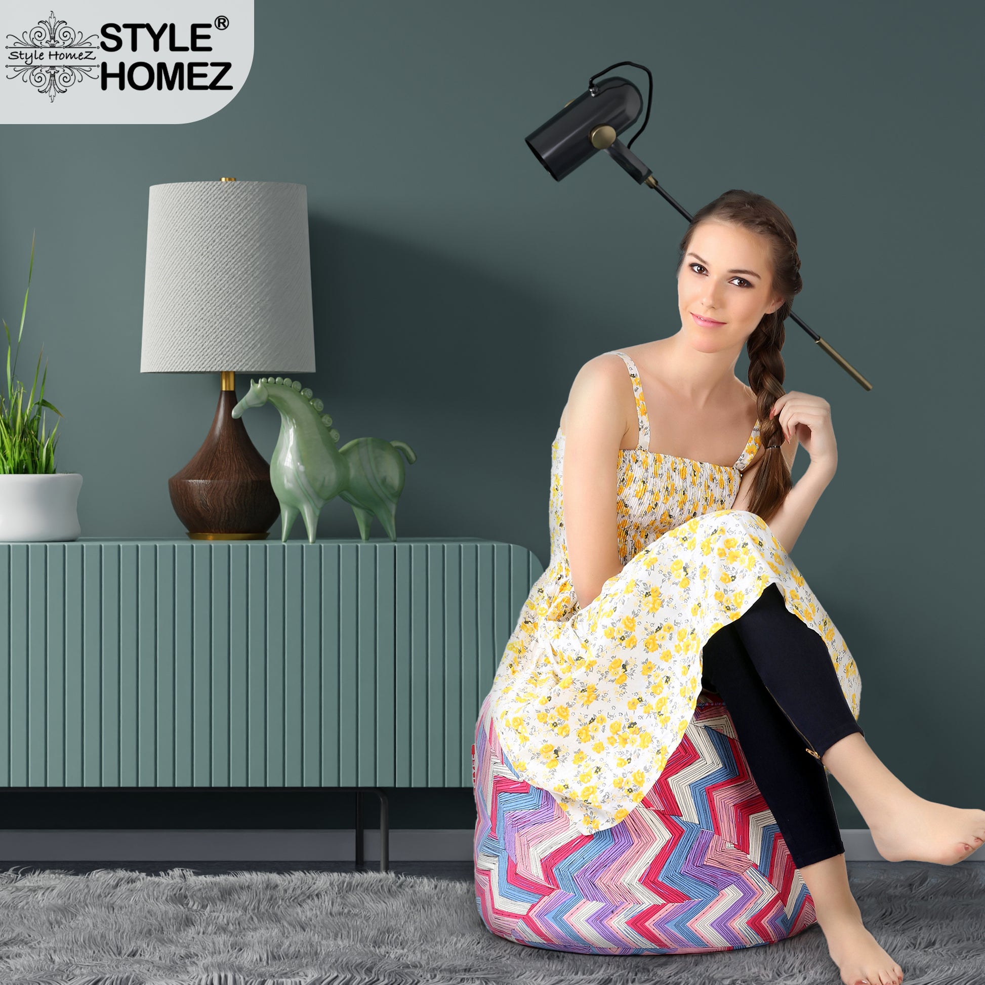 Round - Ottoman Printed Bean Bag With Fillers - Large