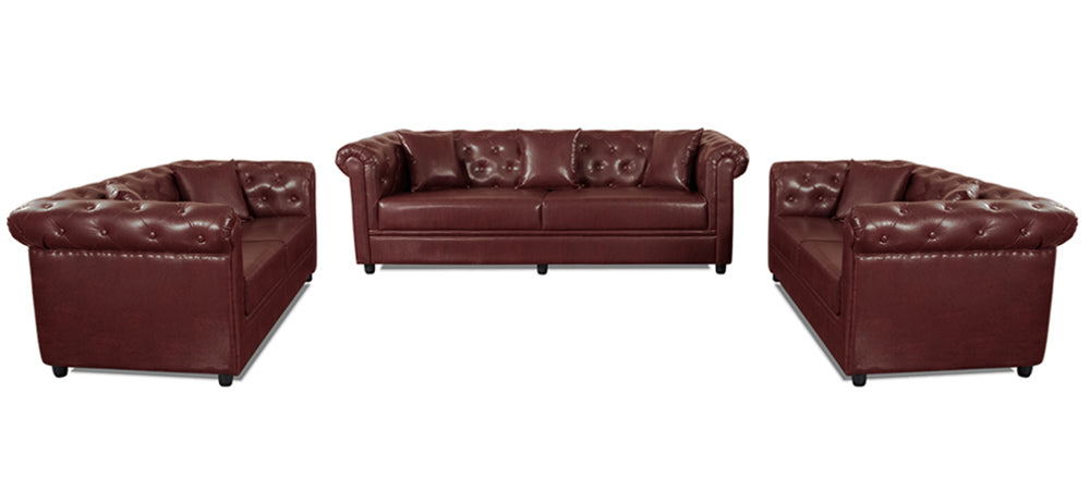 Royale - Garnet Cherry Leatherite Sofa (3-2-2 Sofa Combo)