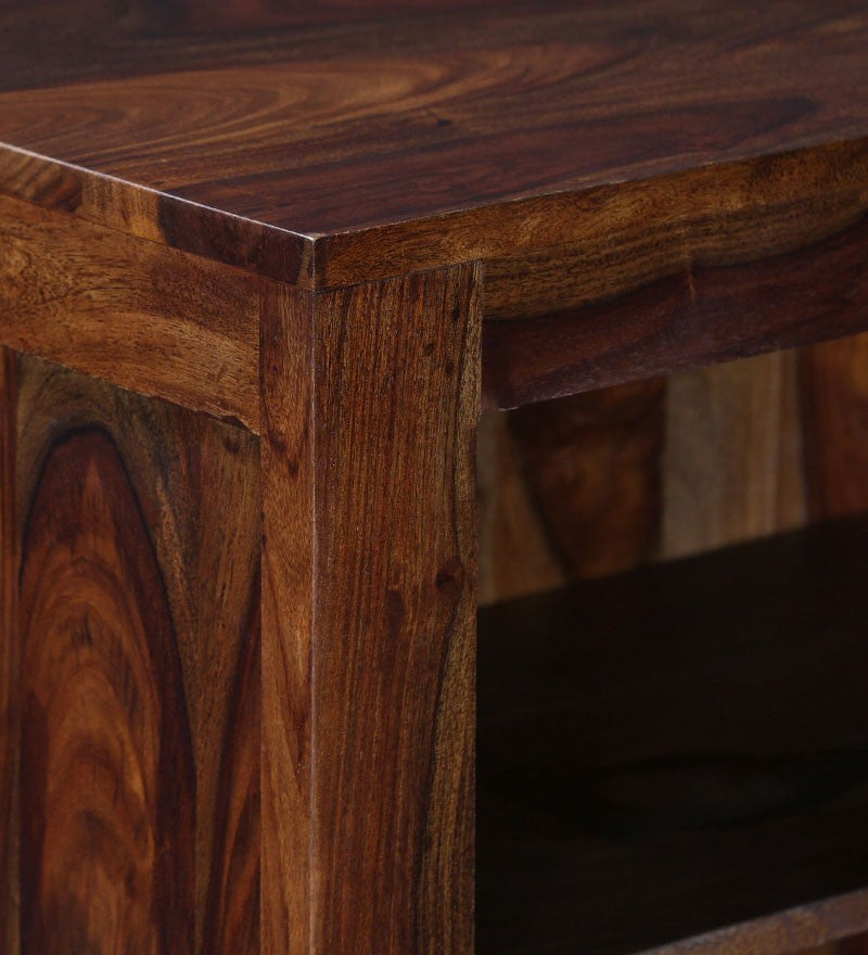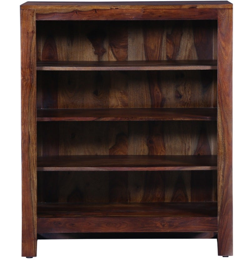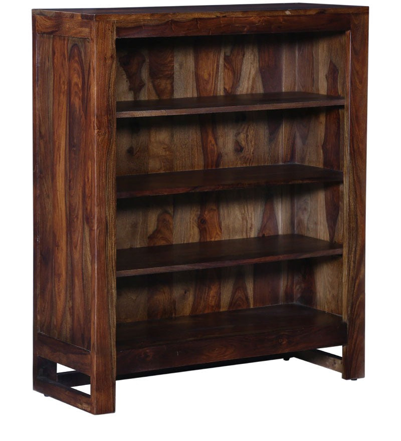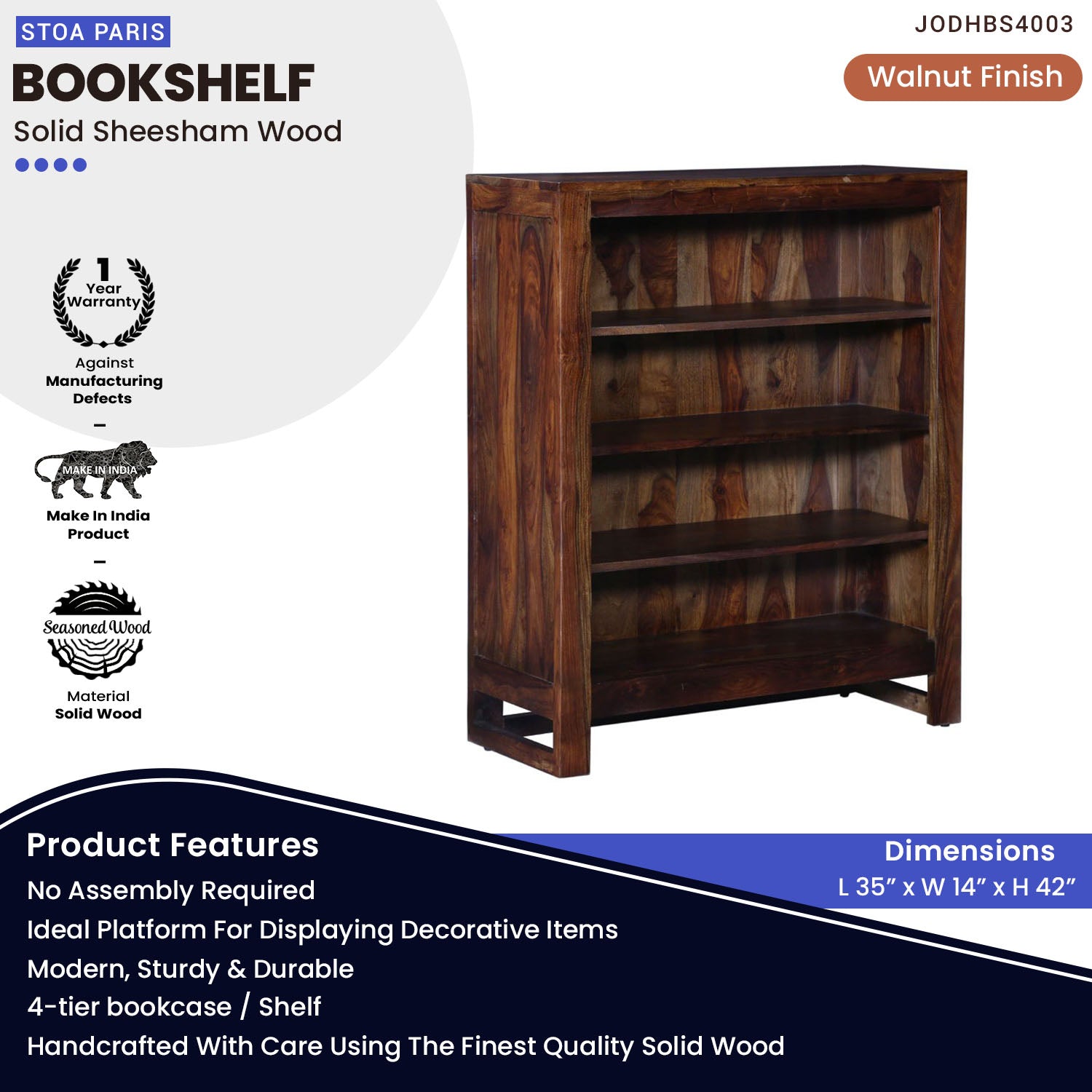 Ruther Solid Wood Bookshelf Storage Organizer In Walnut Polish Shade