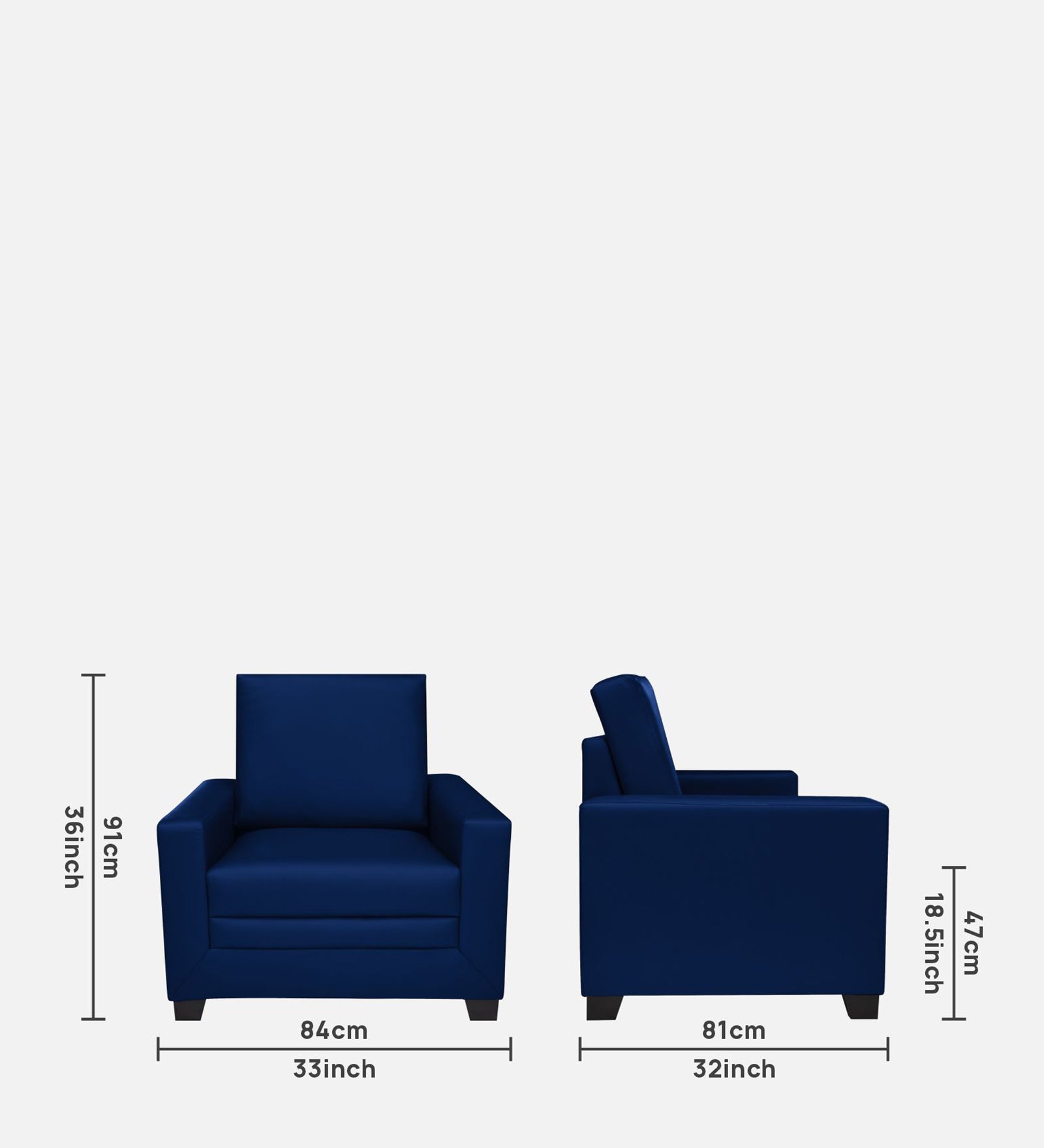 1 Seater : 84L x 81W x 91H (cms)