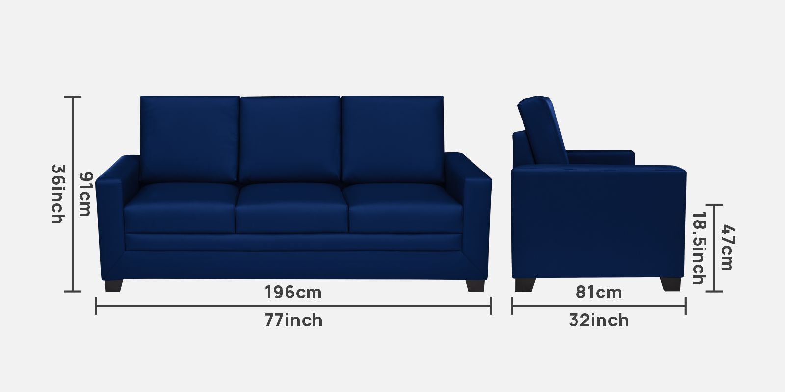 3 Seater :196L x 81W x 91H (cms)