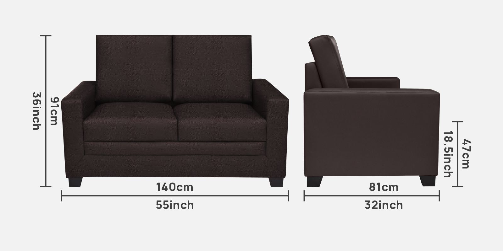 2 Seater :140L x 81W x 91H (cms)