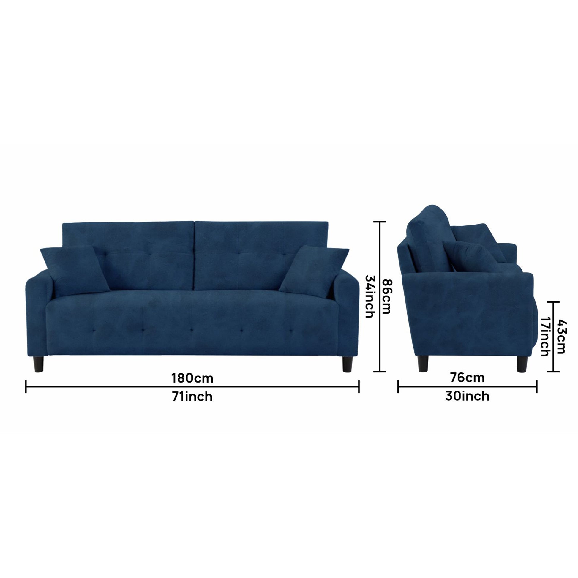 3 Seater :71L x 30W x 34H (cms)