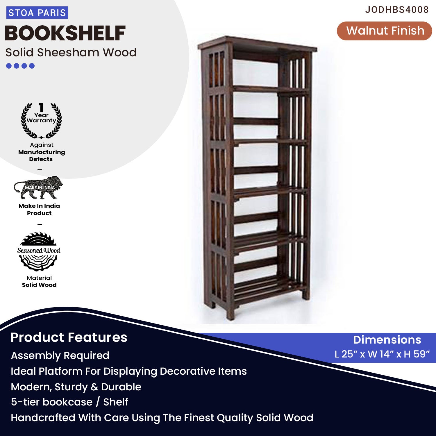 Santino Bookshelf Storage Organizer In Walnut Polish