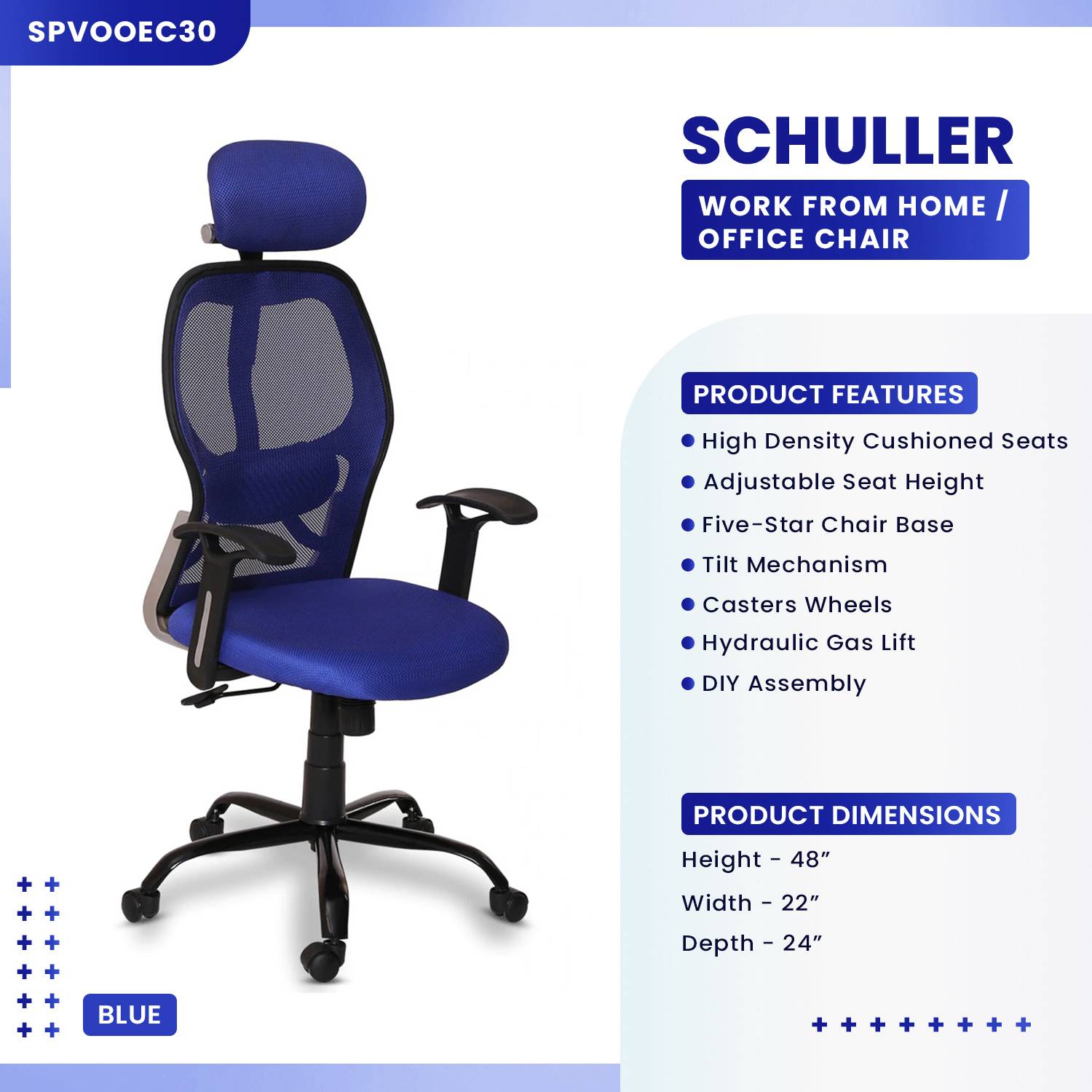 Schuller High Back Ergonomic Chair For Work From Home & Office - Blue
